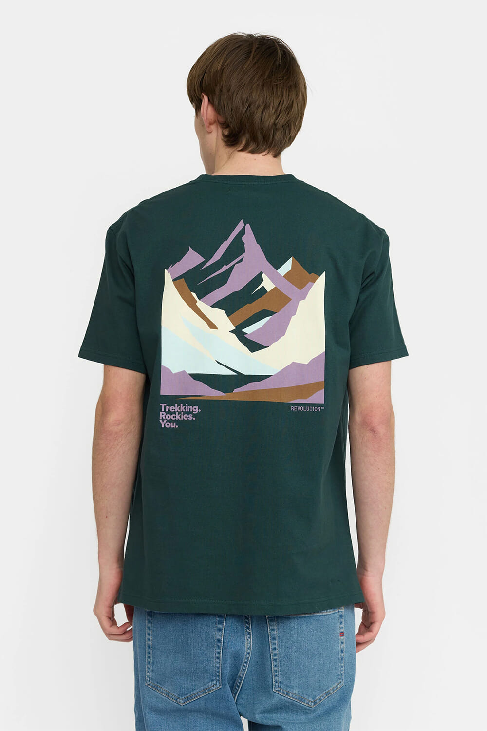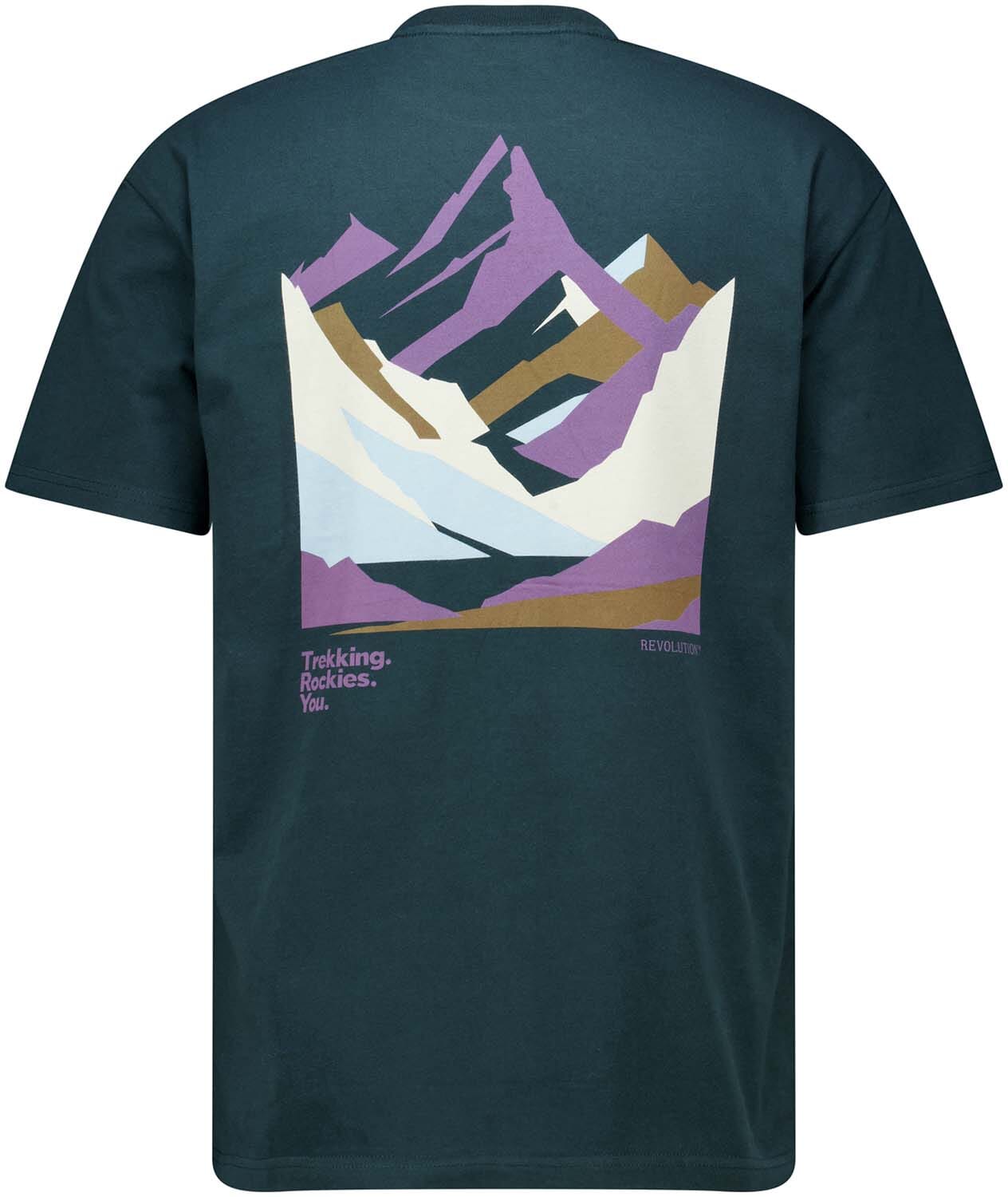 T-shirt Mou van Revolution is een casual heren t-shirt met een ronde hals en korte mouwen. Het grafische patroon met bergmotief aan de achterkant voegt een avontuurlijke flair toe. Ideaal voor ontspannen gelegenheden, dit shirt combineert stijl en comfort moeiteloos.