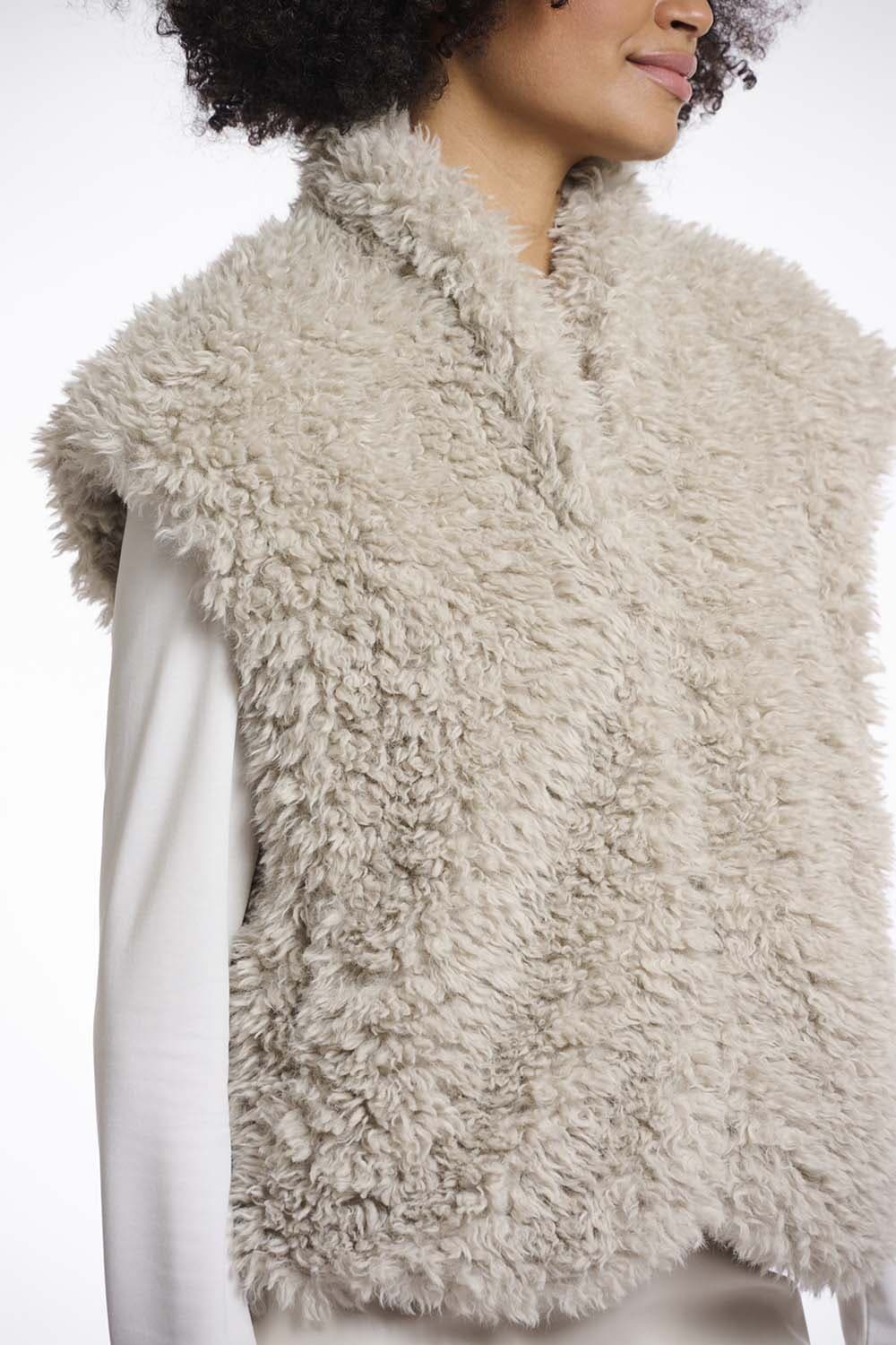 De Teddy Gilet Freya van Rino & Pelle is een stijlvolle en warme gilet zonder mouwen. Dit casual ontwerp heeft een zachte, pluizige textuur die comfort en een modieuze uitstraling biedt. Perfect voor een gelaagde look en veelzijdig genoeg voor elke gelegenheid.