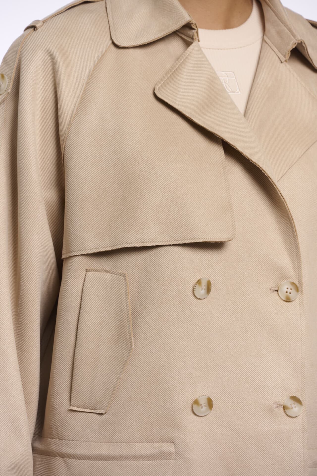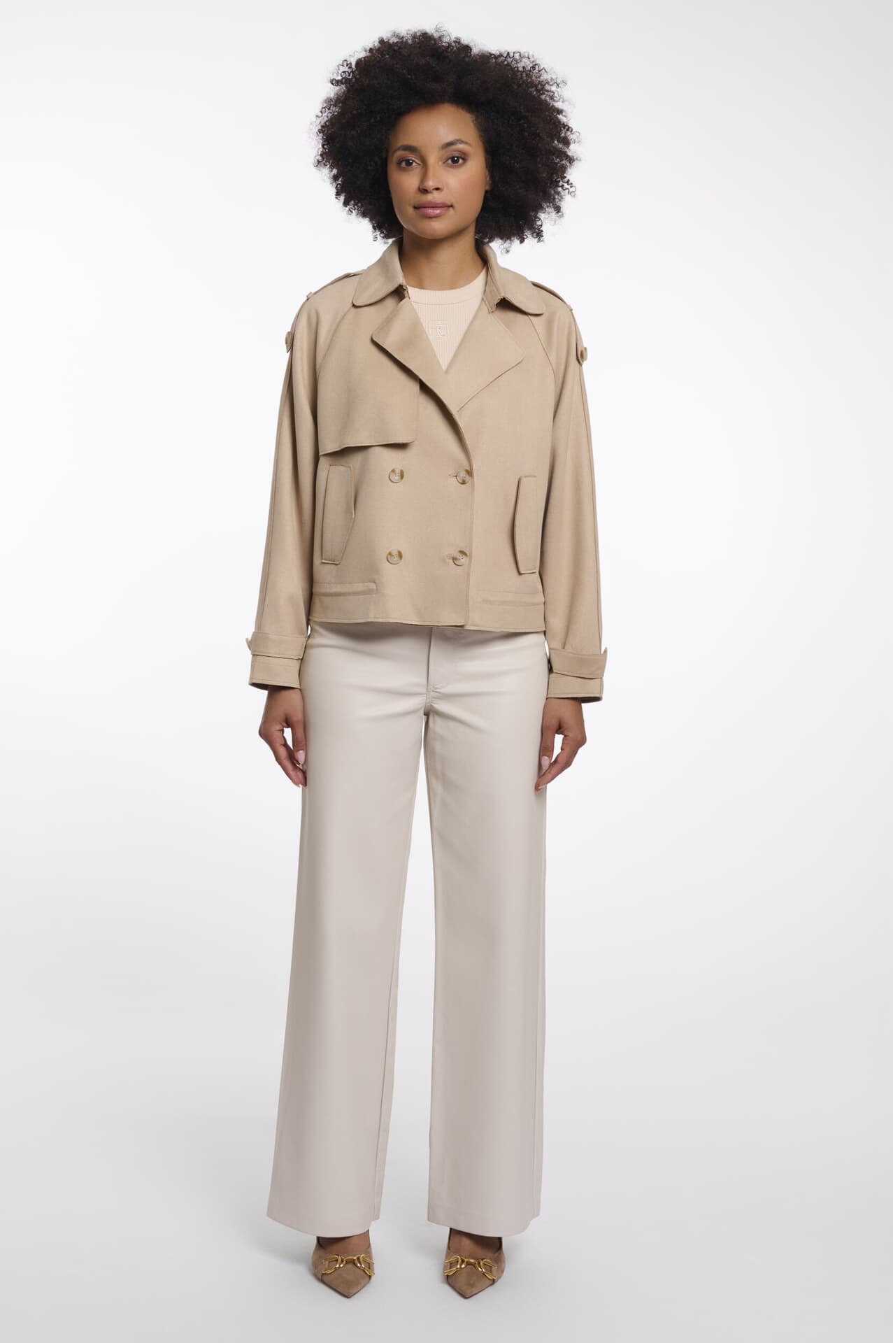 De Jas Doona Double breasted van Rino & Pelle is een verfijnde trenchcoat met een opstaande kraag, dubbele knoopsluiting en zakken aan de voorkant. De lange mouwen zijn afgewerkt met knopen, wat zorgt voor een stijlvolle en tijdloze uitstraling.