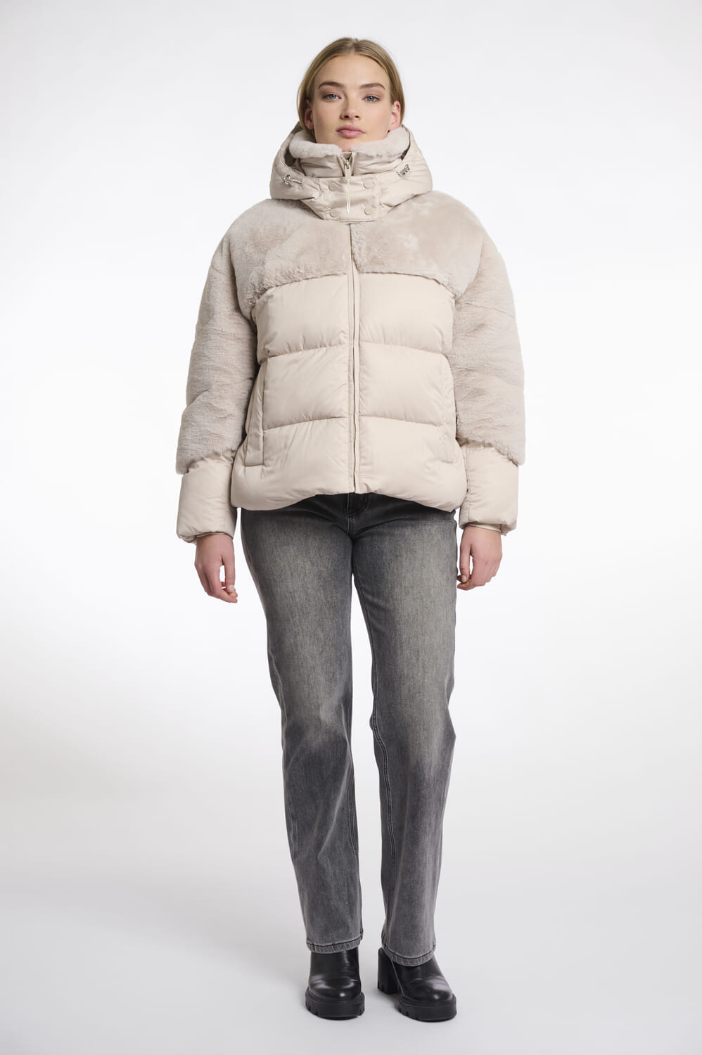 Jas Shana van Rino & Pelle is een casual dames donsjack met capuchon en lange mouwen. Deze tussenjas biedt een stijlvolle en warme uitstraling, perfect voor elke gelegenheid.