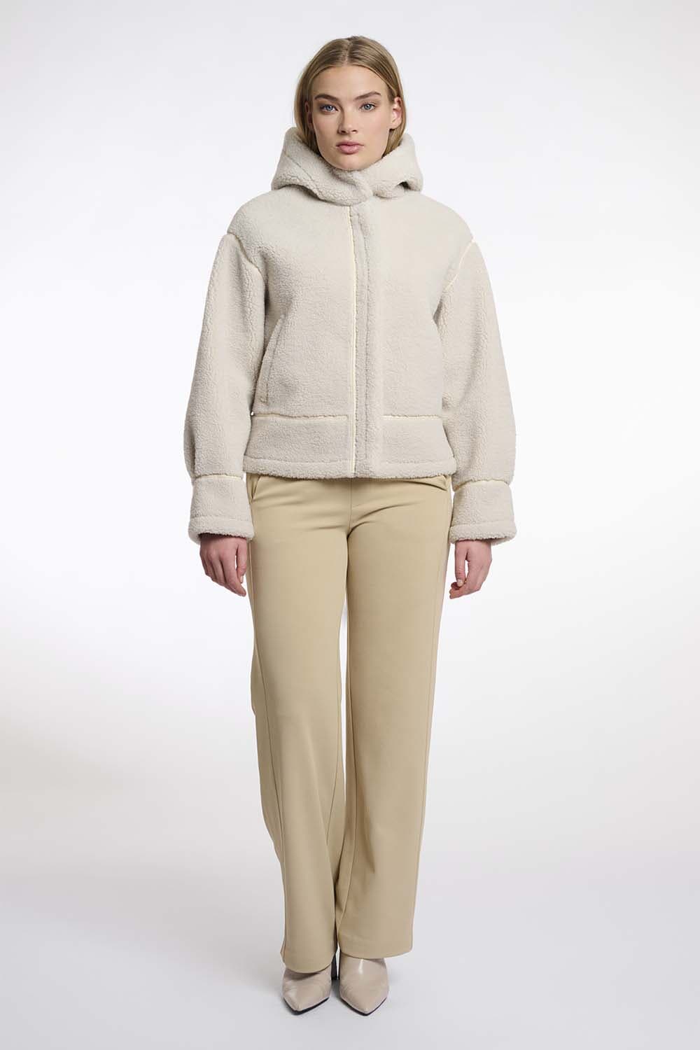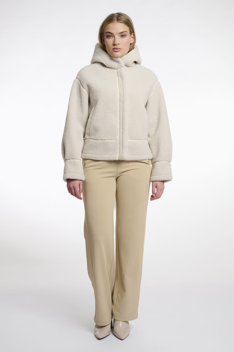 De Teddy Jas Felicia van Rino & Pelle is een stijlvolle tussenjas met een comfortabele capuchon en handige zakken op de voorzijde. Deze dames teddy jas heeft lange mouwen en biedt een warme, modieuze uitstraling die perfect past bij elk casual ensemble.