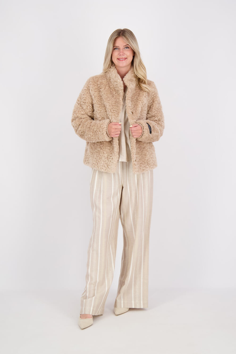 Jas Kion van Rino & Pelle is een teeddy jas met een opstaande kraag en lange mouwen. De verborgen zijritssluiting geeft een stijlvolle afwerking. Perfect voor dagelijks gebruik dankzij het comfortabele ontwerp en de veelzijdige uitstraling die bij verschillende gelegenheden past.