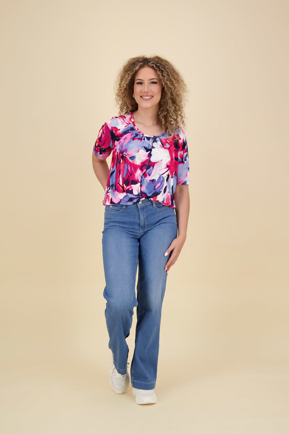 De Blouson o-neck s/s van Roberto Sarto is een stijlvolle top met korte mouwen, perfect voor casual gelegenheden. De ronde hals en het bloemmotief geven het een frisse uitstraling. De regular fit zorgt voor comfort, ideaal voor een moderne en modieuze garderobe.