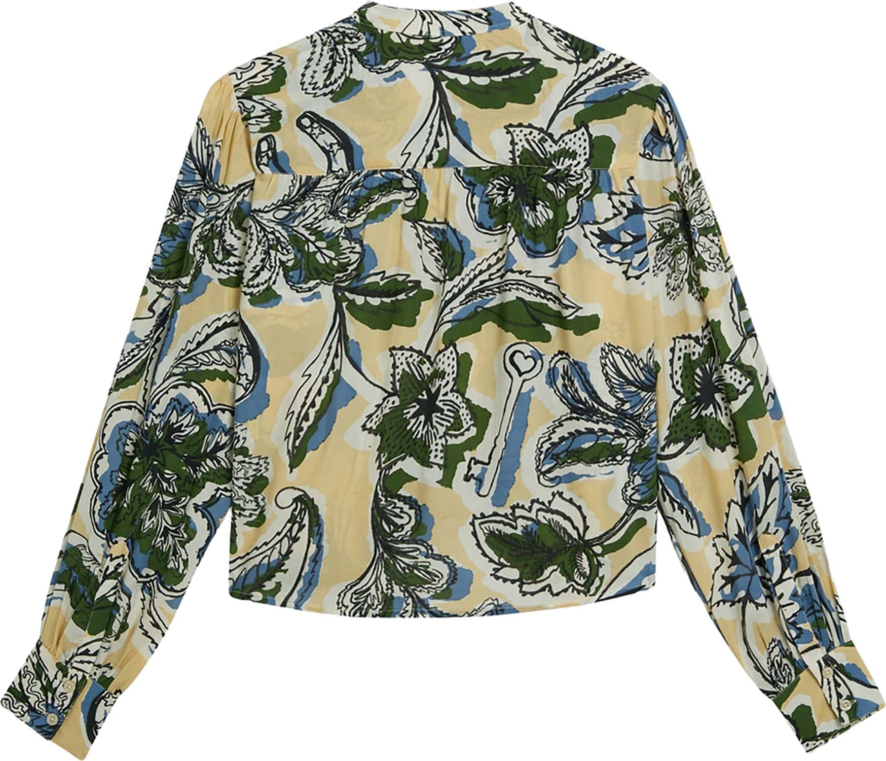 De Blouse Pin Tuck van Scotch & Soda is een stijlvolle dames blouse met een losse pasvorm en V-hals. Deze casual blouse heeft lange mouwen met manchetten met knopen en een bloemen grafisch patroon. Ideaal voor een ontspannen en modieuze casual gelegenheid.