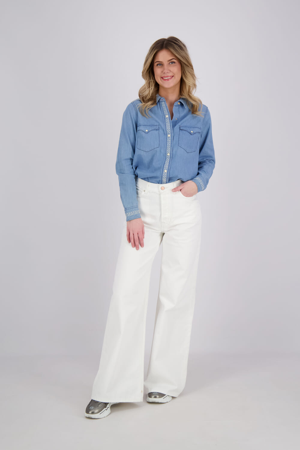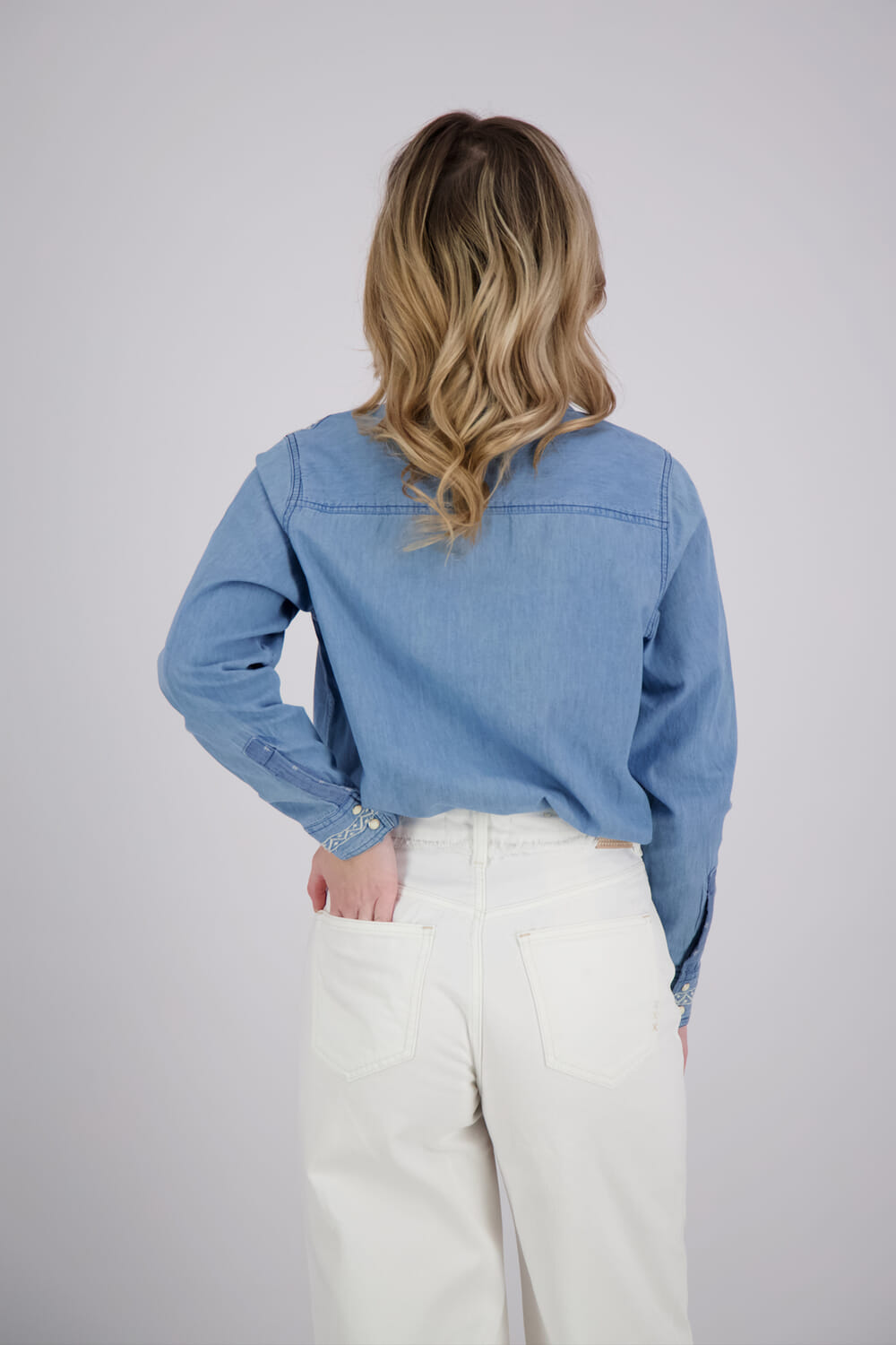 De Blouse Washed out lightweight denim van Scotch & Soda is een casual dames blouse met een effen patroon. Voorzien van lange mouwen, zakken op de voorzijde en manchetten met knopen. Ideaal voor een stijlvolle, alledaagse look. Perfect voor elke gelegenheid.