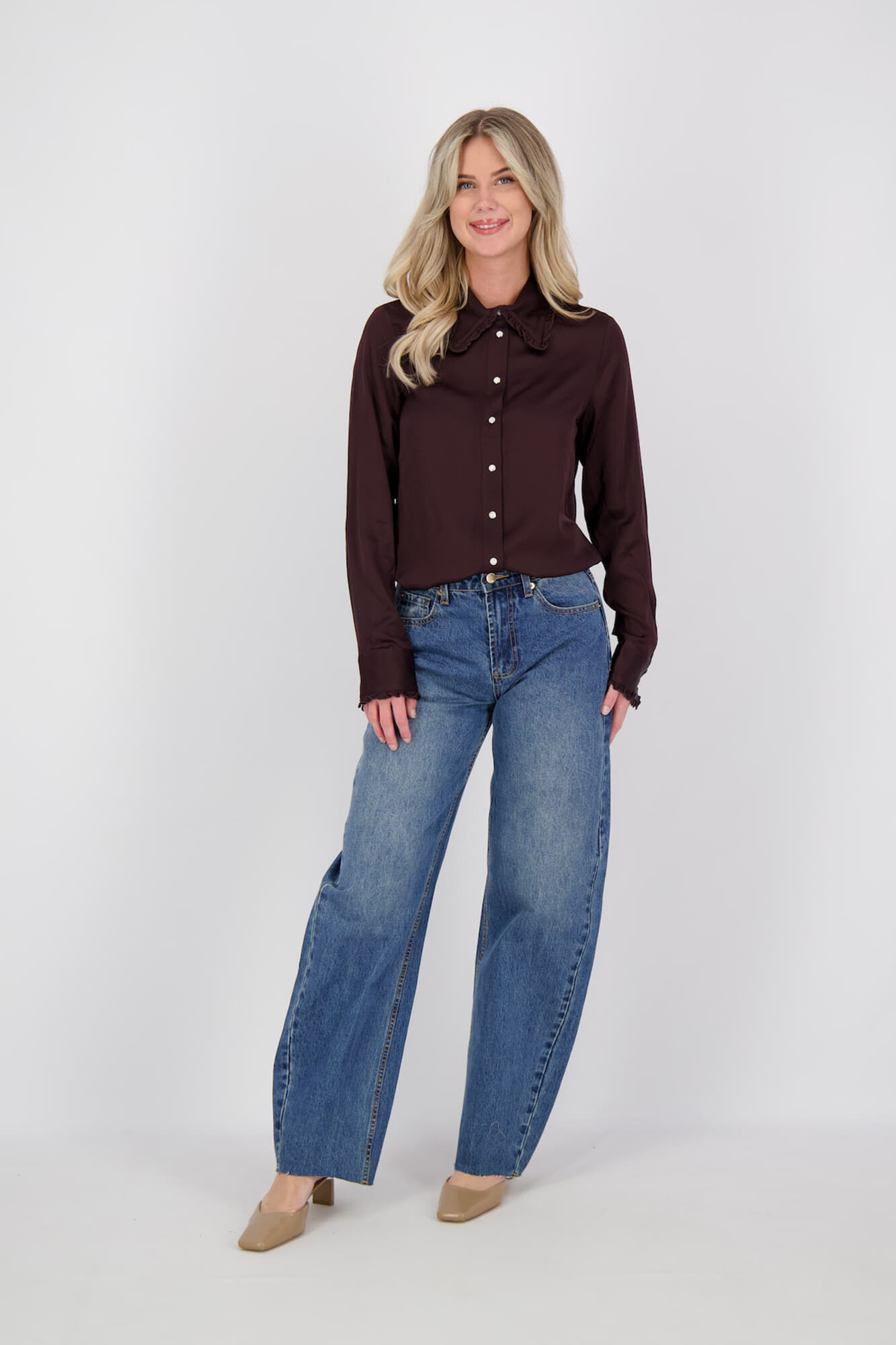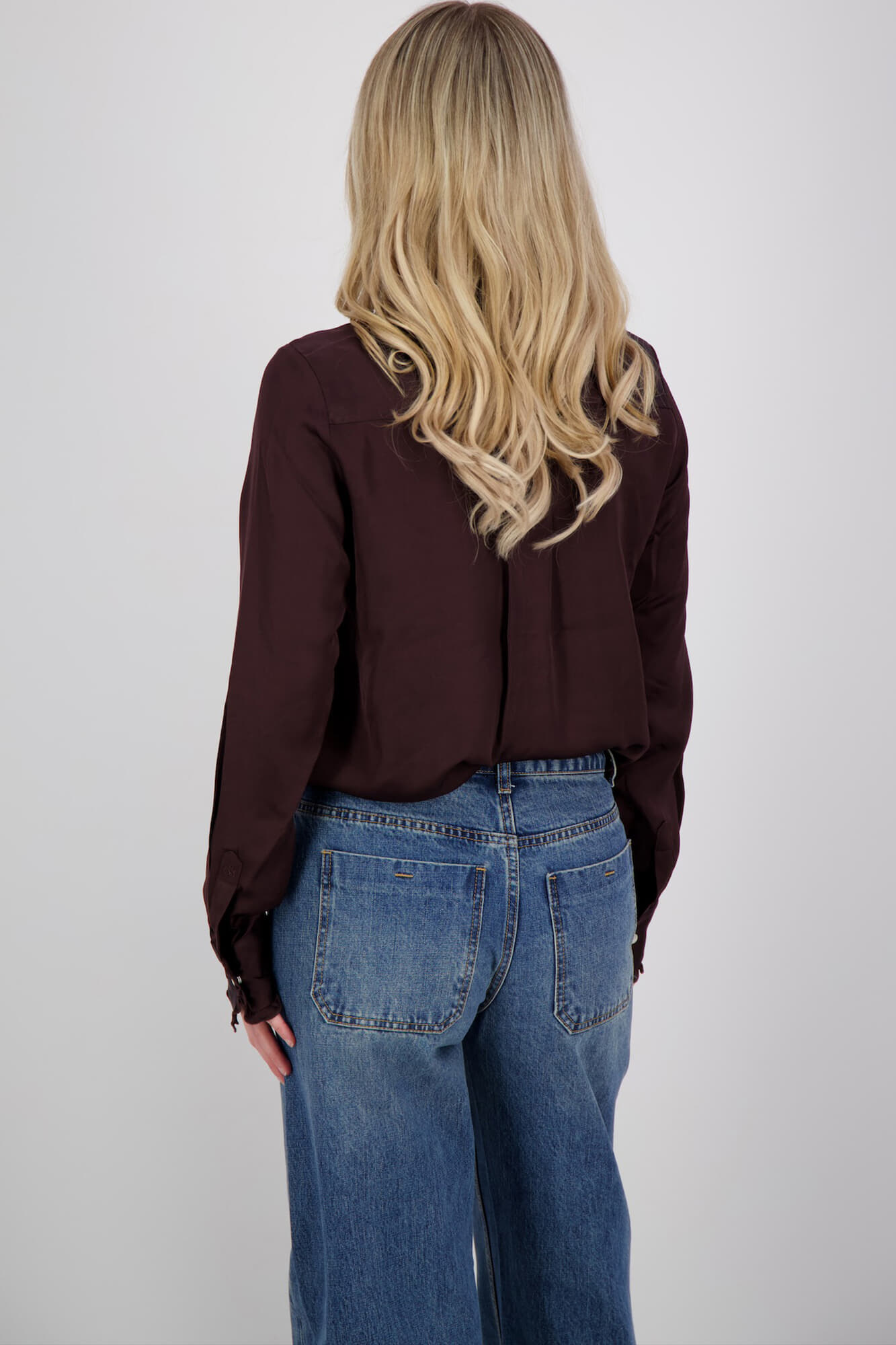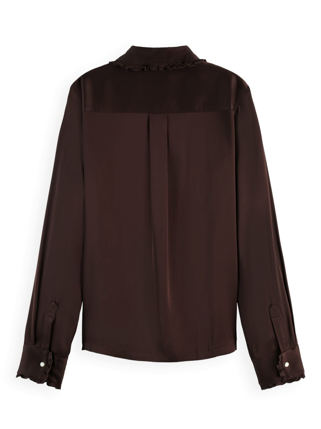 De blouse with ruffle van Scotch & Soda is een stijlvolle dames blouse met een button-down kraag en lange mouwen. De effen blouse heeft een regular fit en is perfect voor een nette gelegenheid. De knoopsluiting en manchetten met knopen maken het ontwerp compleet.