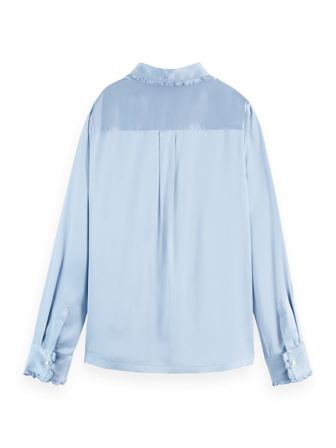 De blouse with ruffle van Scotch & Soda is een stijlvolle dames blouse met een button-down kraag en lange mouwen. De effen blouse heeft een regular fit en is perfect voor een nette gelegenheid. De knoopsluiting en manchetten met knopen maken het ontwerp compleet.