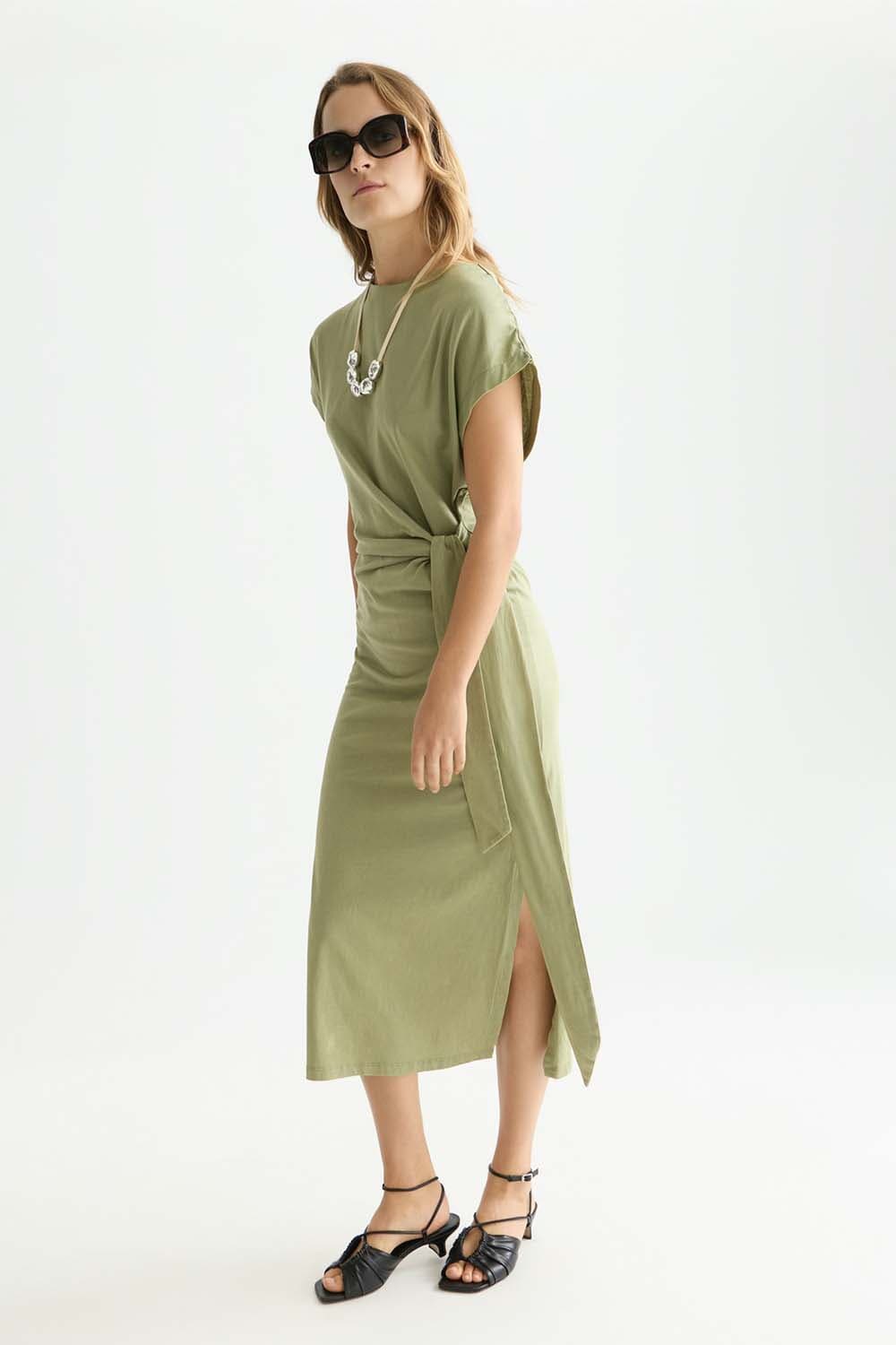 De Geknoopte Jurk Midi Relaxed van Scotch & Soda combineert casual stijl met een normale taille en een elegante ronde halslijn. Deze effen midi jurk is perfect voor een informele gelegenheid en biedt comfort met een gemakkelijk draagbare pasvorm en korte mouwen.