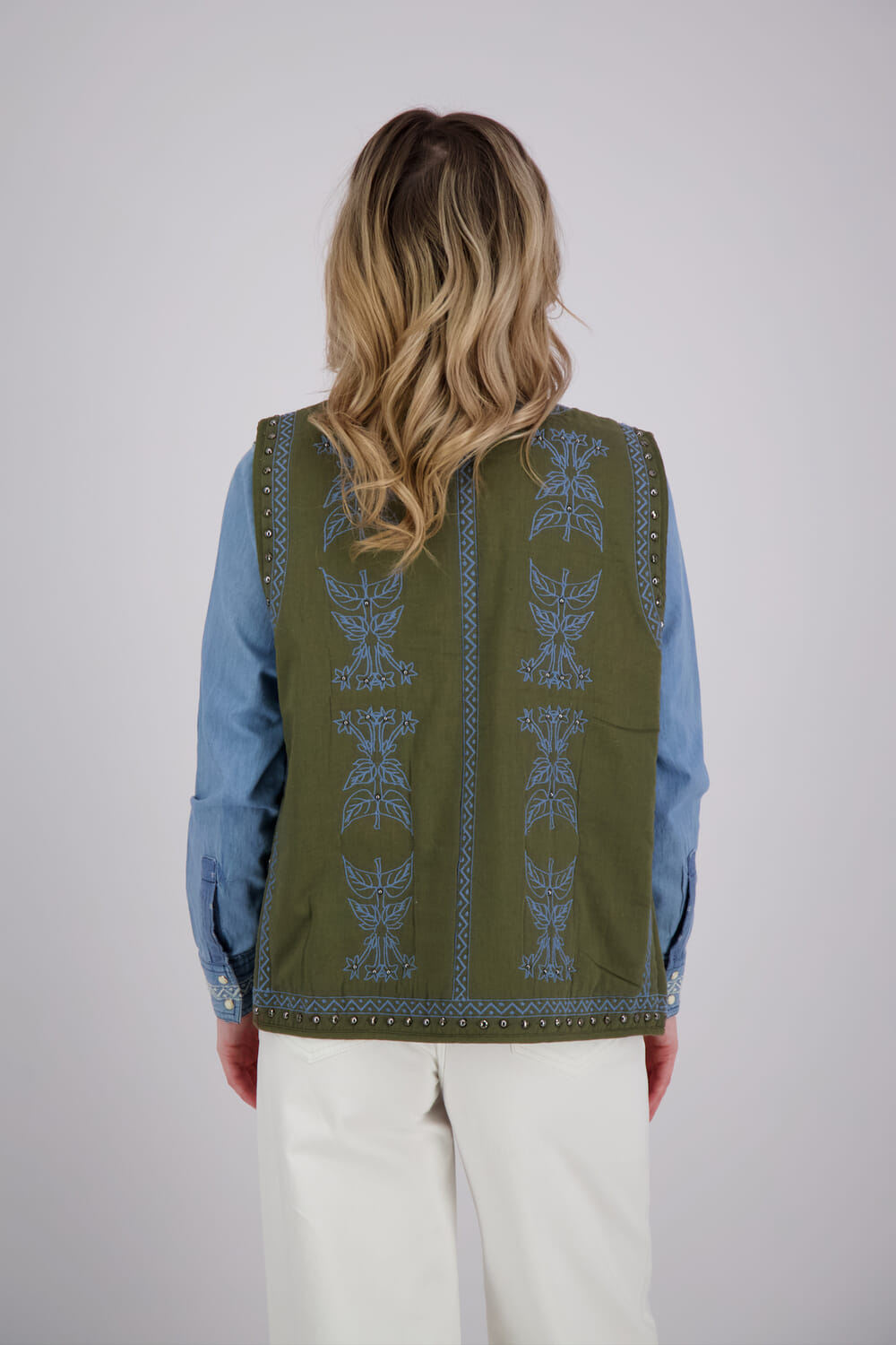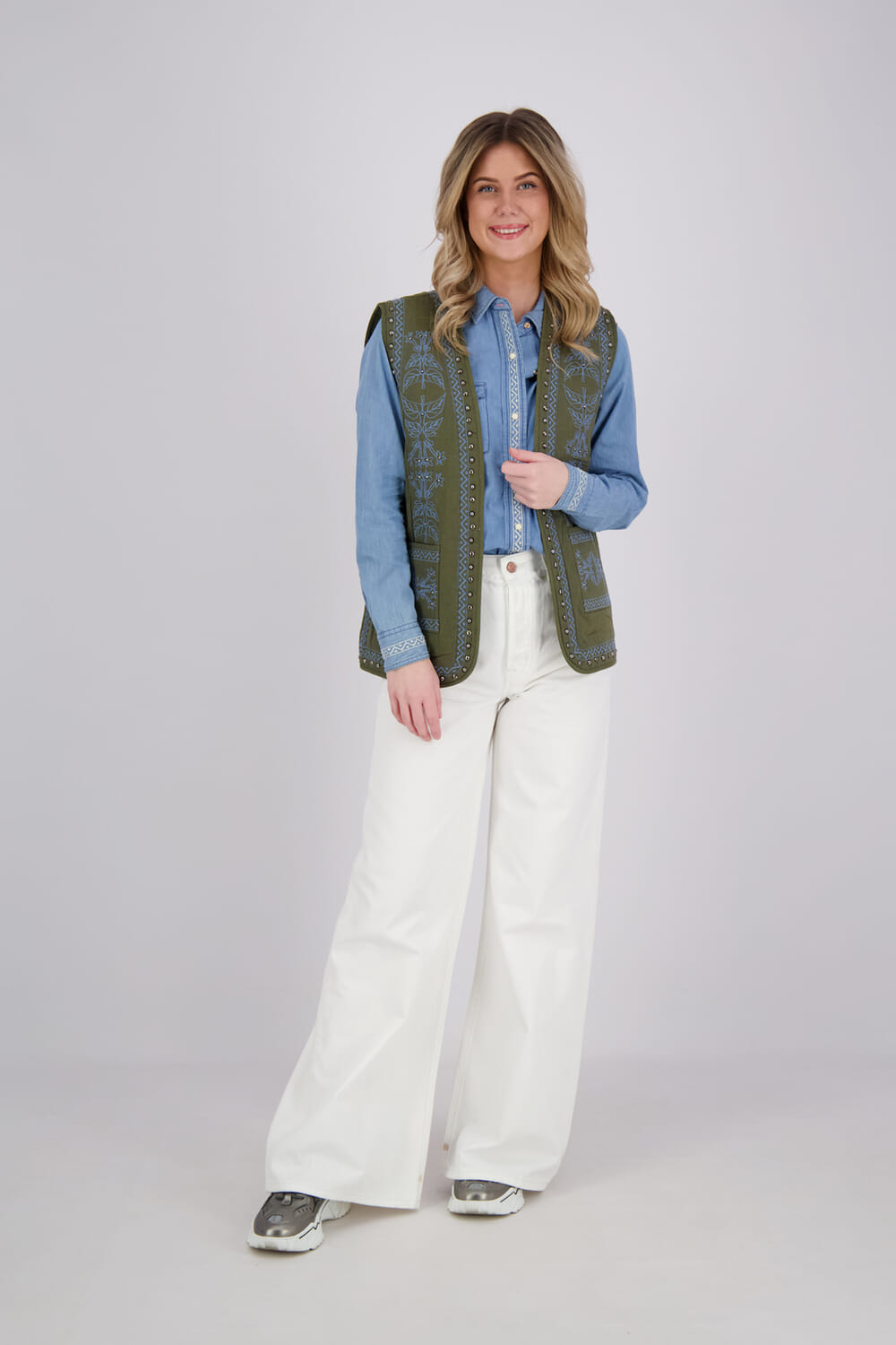 De Gilet Floral van Scotch & Soda is een stijlvol vest zonder mouwen met een uniek bloemenpatroon. Het effen ontwerp, verrijkt met verfijnde borduursels, maakt het een veelzijdig kledingstuk. Perfect voor elke gelegenheid en geschikt voor een breed publiek.