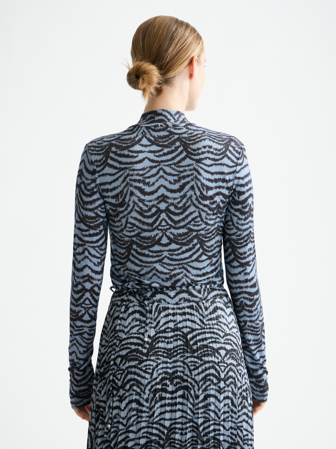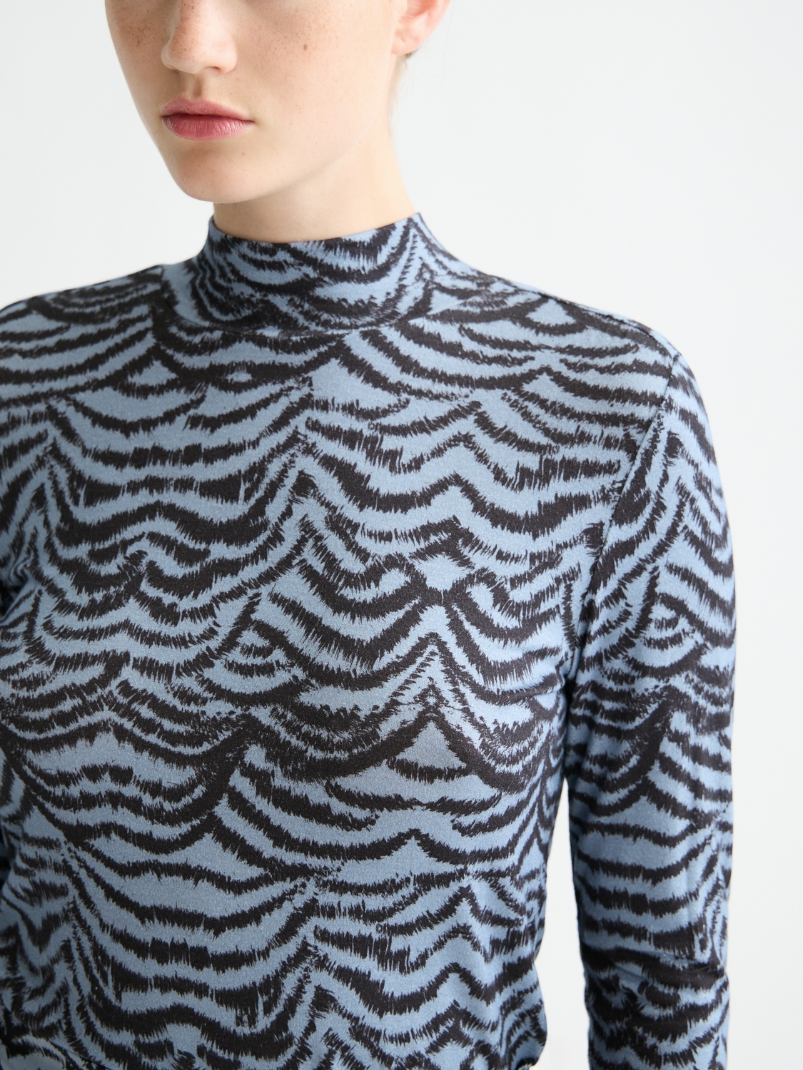 De longsleeve Ikat Feather van Scotch & Soda combineert een minimalistische stijl met een grafisch patroon. Deze dames longsleeve heeft een opstaande kraag en lange mouwen, en biedt een slimfit pasvorm die elegantie en comfort samenbrengt in een inspirerende mode-uitdrukking.