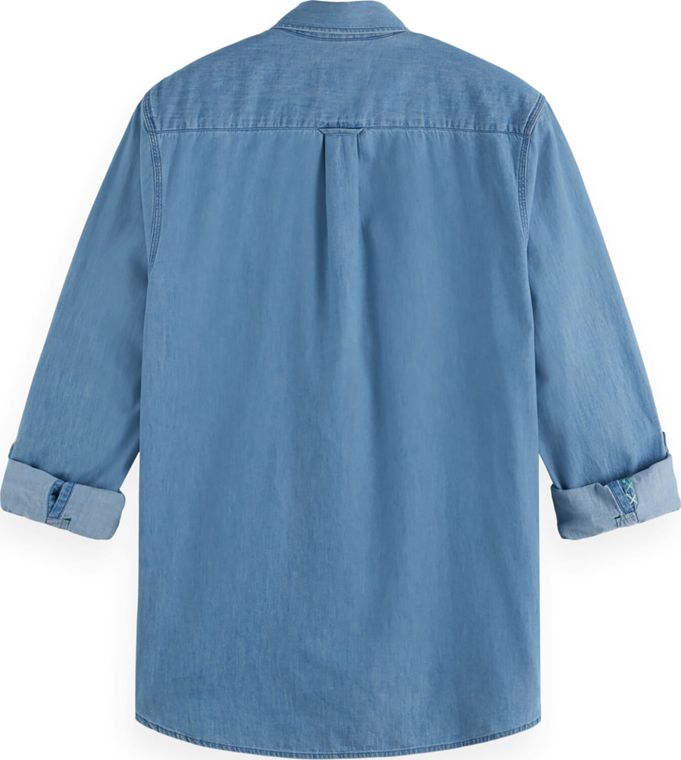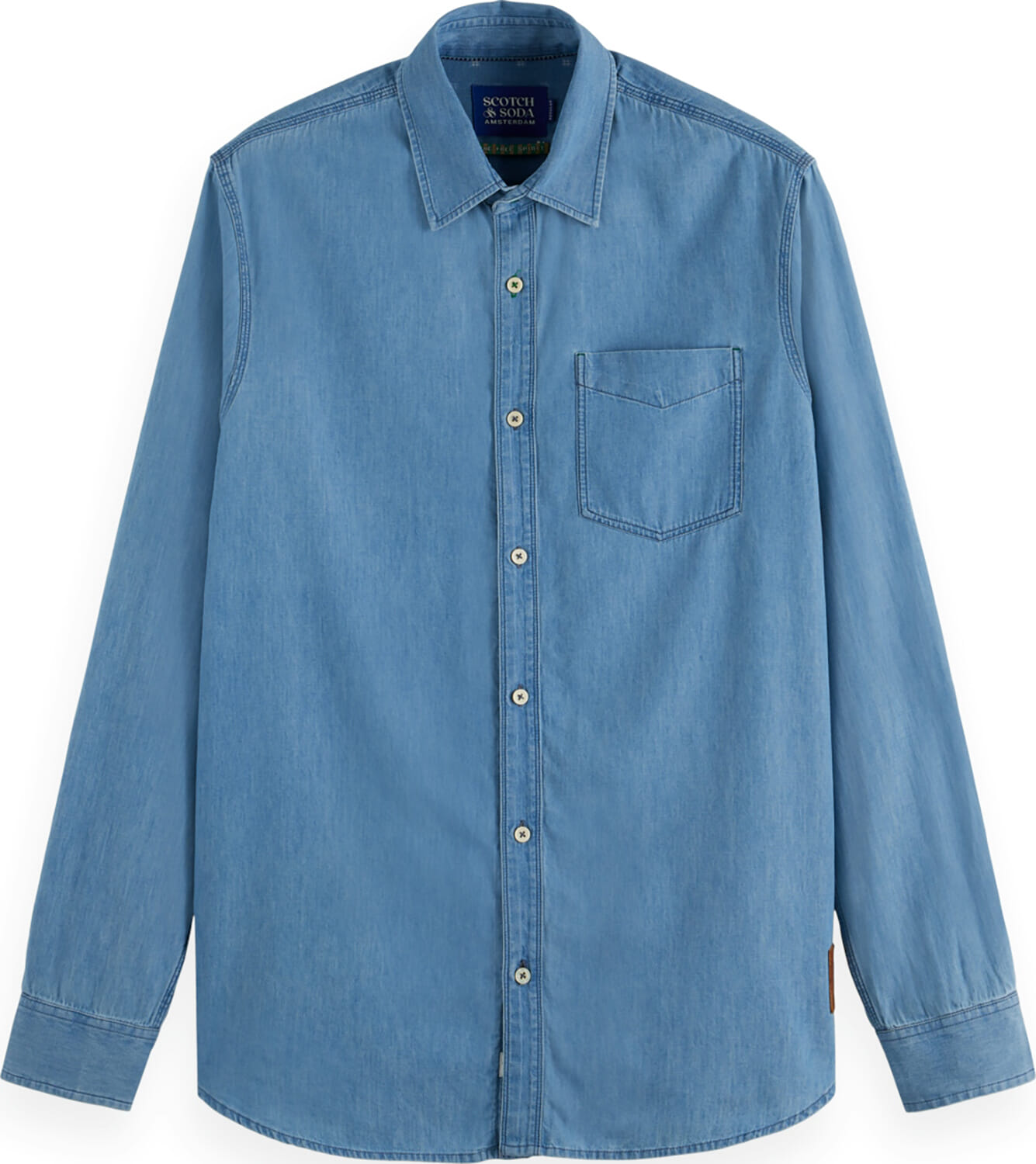 Het Easy lightweight denim shirt met lange mouwen van Scotch & Soda biedt een casual stijl voor de zomer. Gemaakt van denim, met zakken op de voorzijde en knoopsluiting, is het effen patroon en de manchetten met knopen ideaal voor elke gelegenheid. Perfect voor heren.