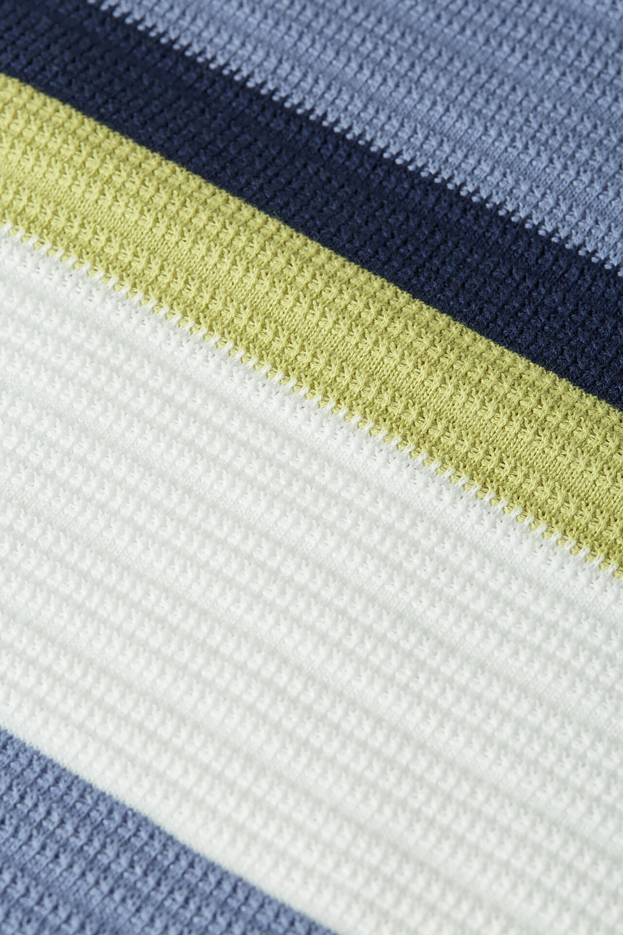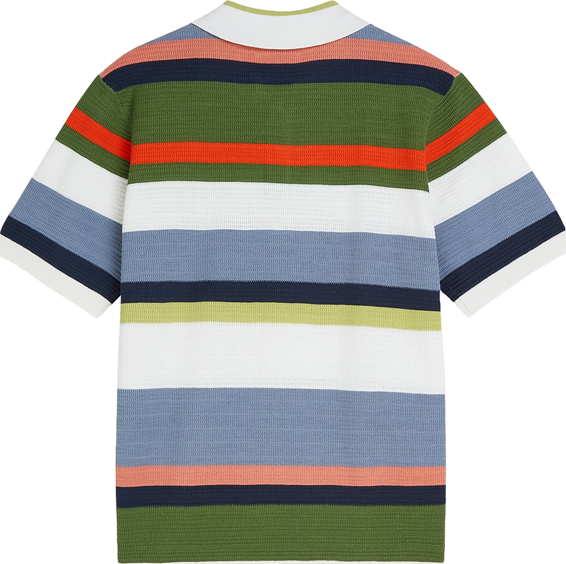 Polo van Scotch & Soda met streeppatroon en wafelstructuur. De polokraag met spreidkraag en knoopsluiting geeft een verzorgde afwerking, terwijl de regular pasvorm en korte mouwen luchtig dragen. Combineer met een chino of jeans voor een casual, sportieve set.