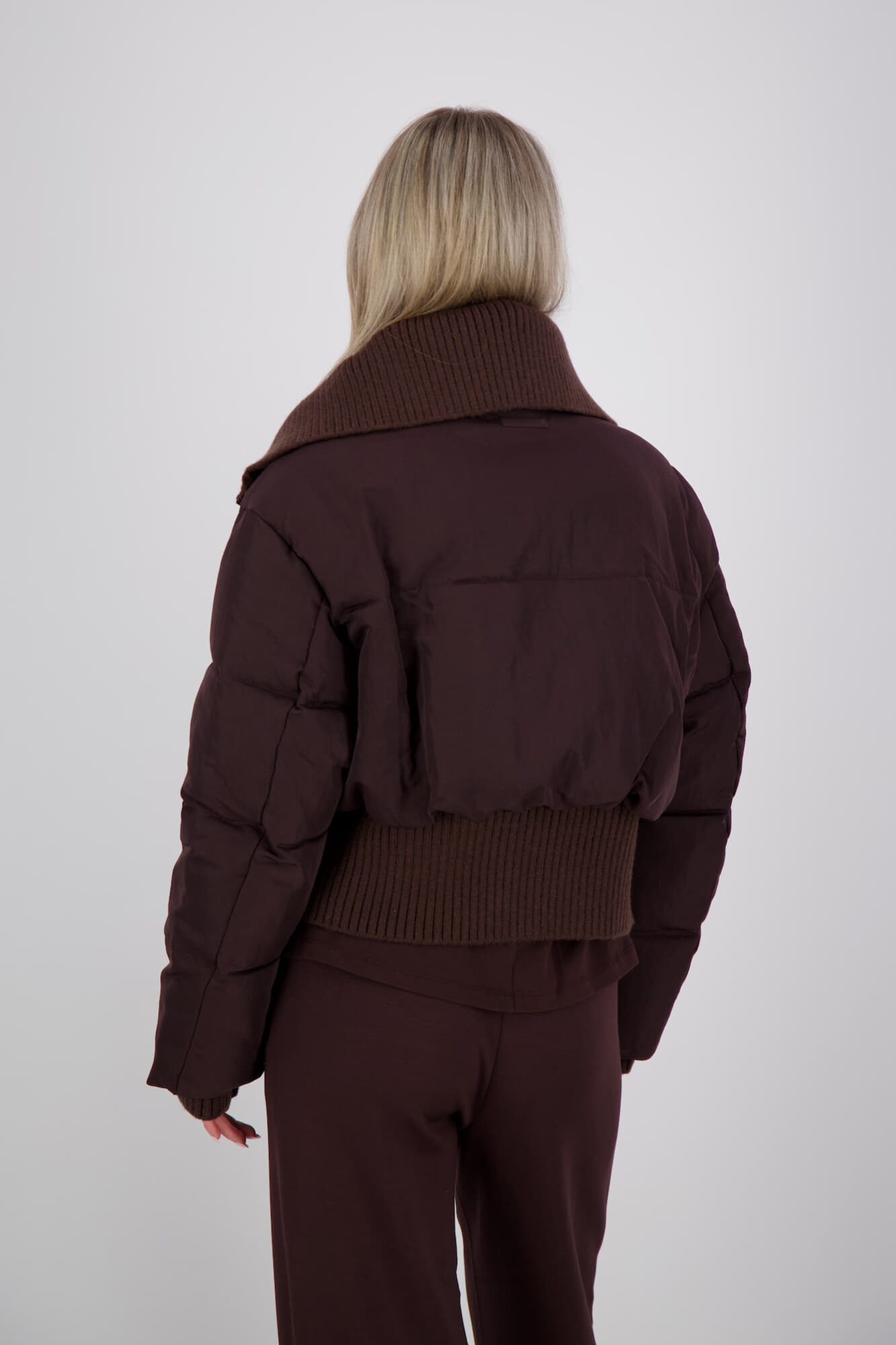 De Pufferjas Aviator van Scotch & Soda is een stijlvolle jas met een opstaande kraag en ribgebreid mouwboord. Deze bomberjas heeft een cropped fit en lange mouwen, perfect voor een verfijnde uitstraling. Een tijdloze toevoeging aan elke garderobe.