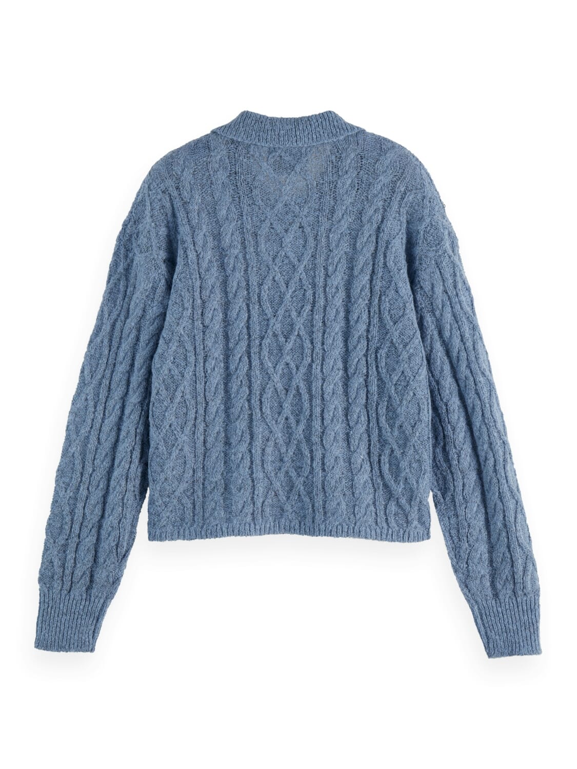 De Pullover Cable Stitch van Scotch & Soda, een veelzijdig vest uit de rugbycategorie, biedt een casual stijl met een opstaande kraag, ribgebreide mouwboorden en knopen. Het heeft een regular fit en lange mouwen en is perfect voor diverse gelegenheden door het effen patroon.