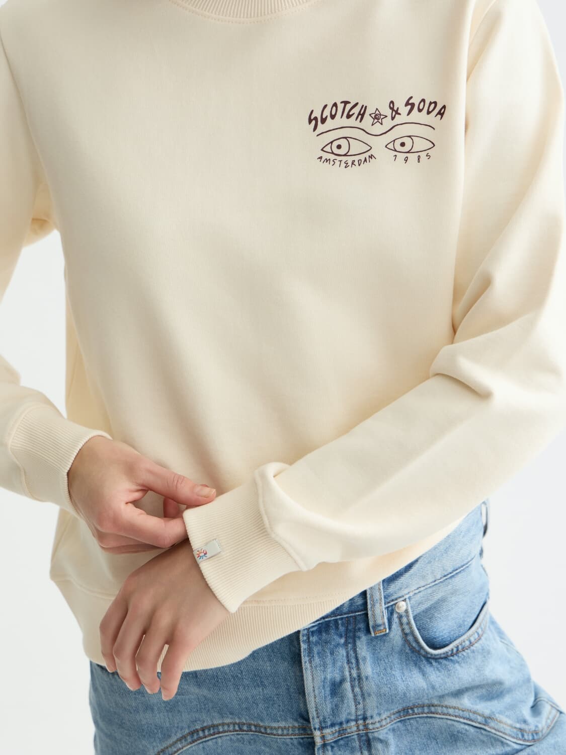 De Sweater Small artwork regular fit van Scotch & Soda is perfect voor een casual gelegenheid. Met een grafisch patroon, ribgebreide mouwboorden en een ronde halslijn biedt deze dames sweater een comfortabele pasvorm. Ideaal voor een stijlvolle, ontspannen look.