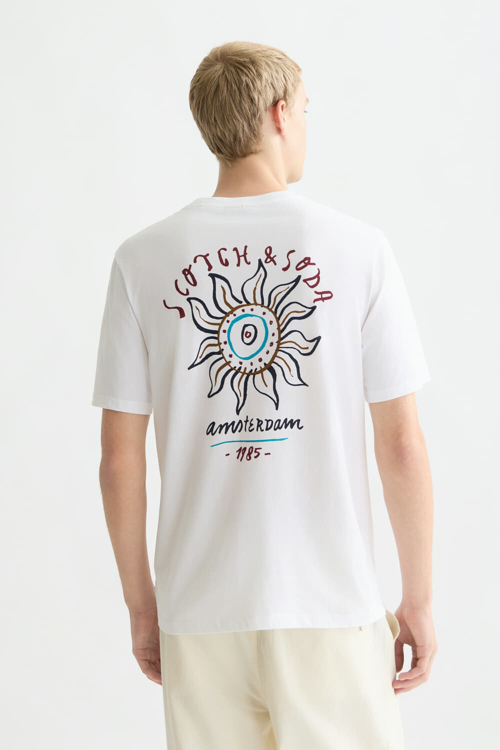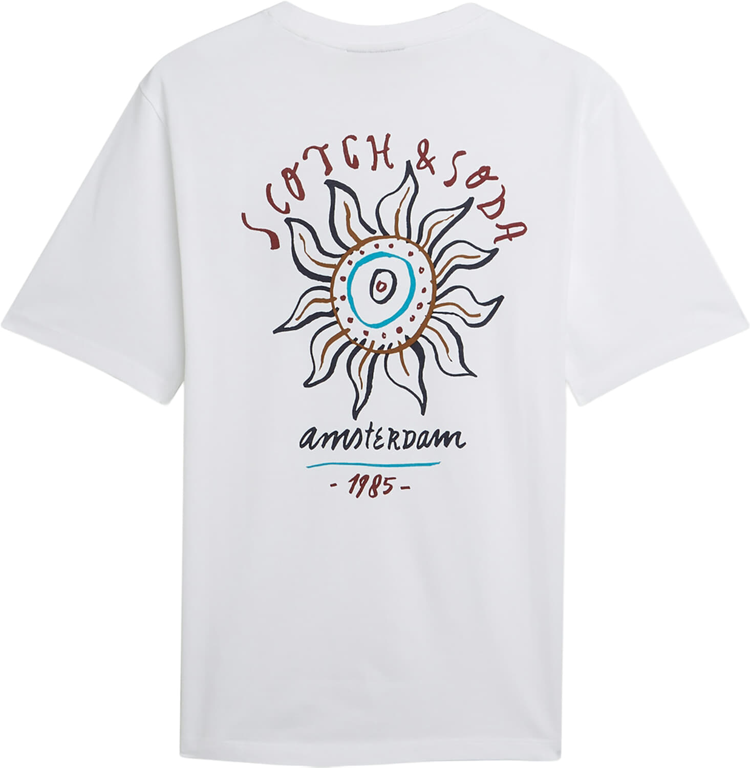 Het T-shirt van Scotch & Soda biedt een casual stijl met een grafisch patroon en ronde hals. Het heeft een regular pasvorm en is verkrijgbaar in korte of lange mouw. Perfect voor heren die op zoek zijn naar comfort en stijl in een kledingstuk.
