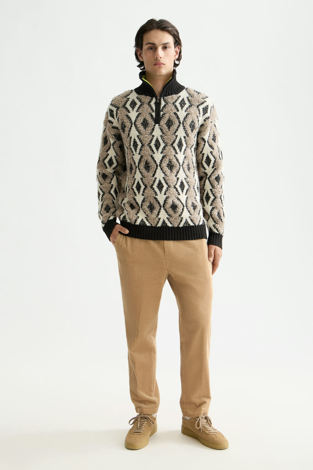 De Trui Argyles van Scotch & Soda is een opvallend grafisch ontwerp in de categorie heren truien. Deze casual trui heeft een ribgebreid mouwboord en een rits, wat zorgt voor een comfortabele, losse pasvorm. Perfect voor een stijlvolle en toegankelijke look.