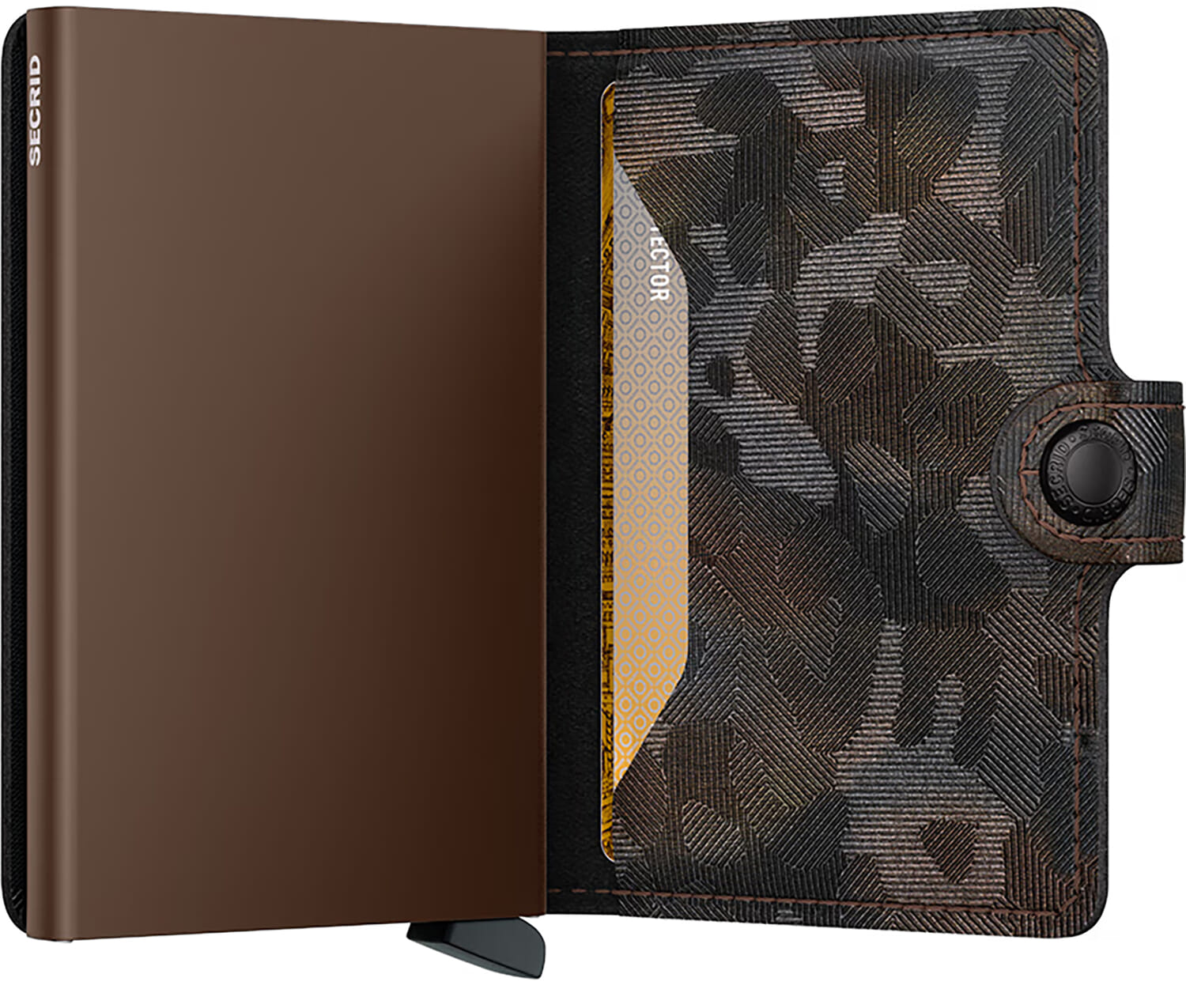 De miniwallet jungle brown van Secrid combineert stijl en functionaliteit. Met een verfijnd camouflagepatroon is deze heren portemonnee een modieuze keuze. Het grafische ontwerp biedt een unieke uitstraling, terwijl de hoogwaardige materialen zorgen voor duurzaamheid en bescherming van kaarten en contant geld.