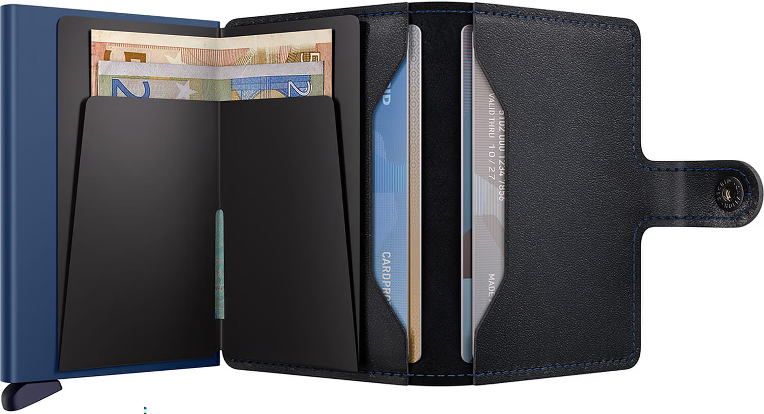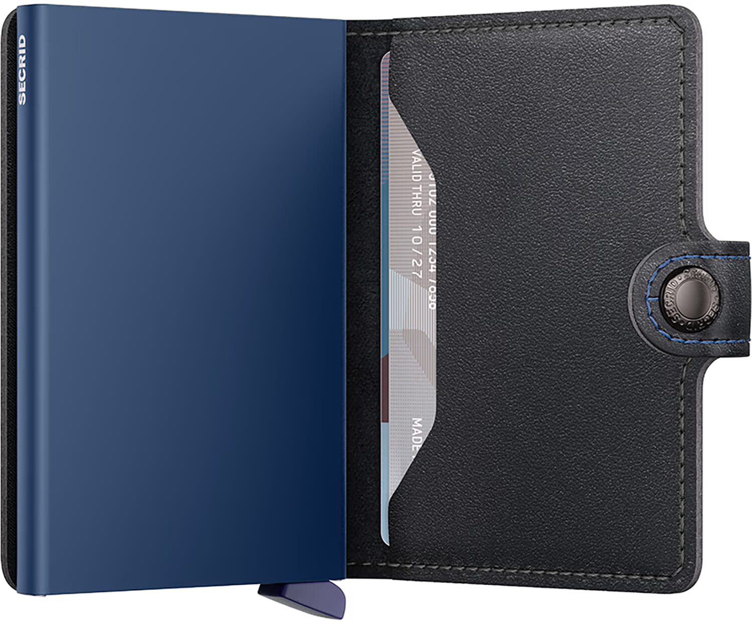 De miniwallet original black-navy van Secrid is een heren portemonnee met een stijlvol en minimalistisch ontwerp. De portemonnee biedt ruimte voor meerdere kaarten en briefgeld, en is voorzien van een handige sluiting. De combinatie van zwart en navy geeft een tijdloze uitstraling.