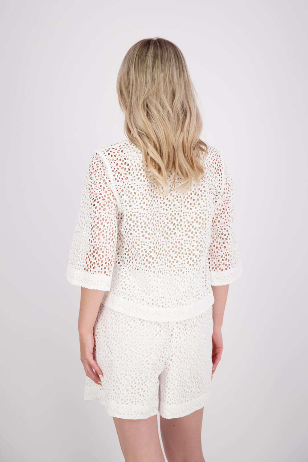 De Blouse Laerke van Selected Femme is een stijlvolle blouse met een button down kraag, gemaakt van katoen. Het heeft een losse pasvorm, brede manchetten, een V-hals en een elegant gaatjespatroon. Perfect voor casual zomerse gelegenheden.