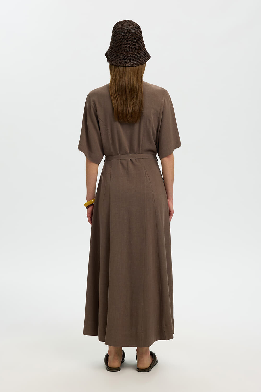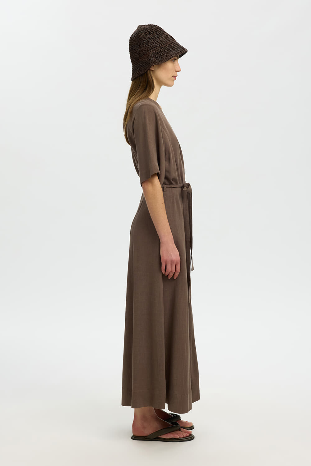 Jurk Viva Regular Linnen Blend van Selected Femme is een stijlvolle maxi jurk met een casual uitstraling. Het heeft een V-hals, knoopsluiting en 2/4 mouwen. De effen kleur en het comfortabele, reguliere pasvorm maken het een veelzijdig kledingstuk.
