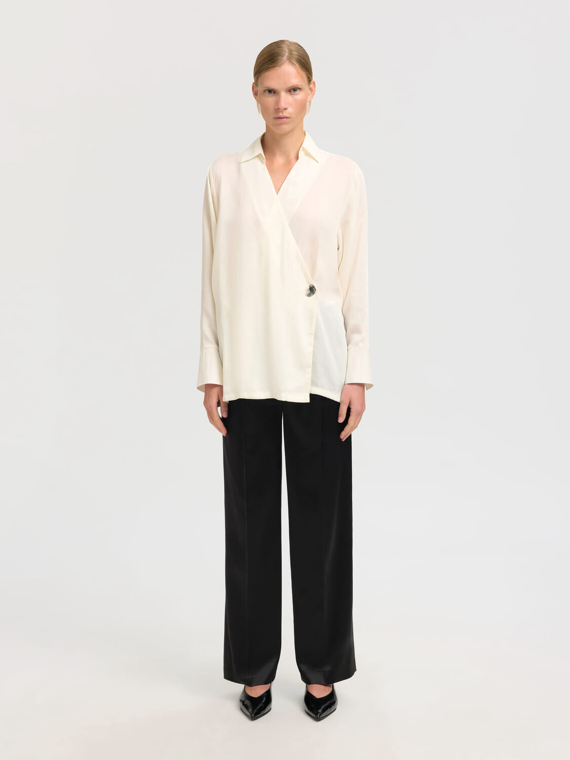 De Pantalon Miya Wide van Selected Femme is een elegante pantalon met een losse pasvorm en normale taillehoogte. Gemaakt voor een zakelijke en verfijnde stijl, biedt deze effen zwarte pantalon een comfortabele pasvorm. Ideaal voor nette gelegenheden met een knoopsluiting.