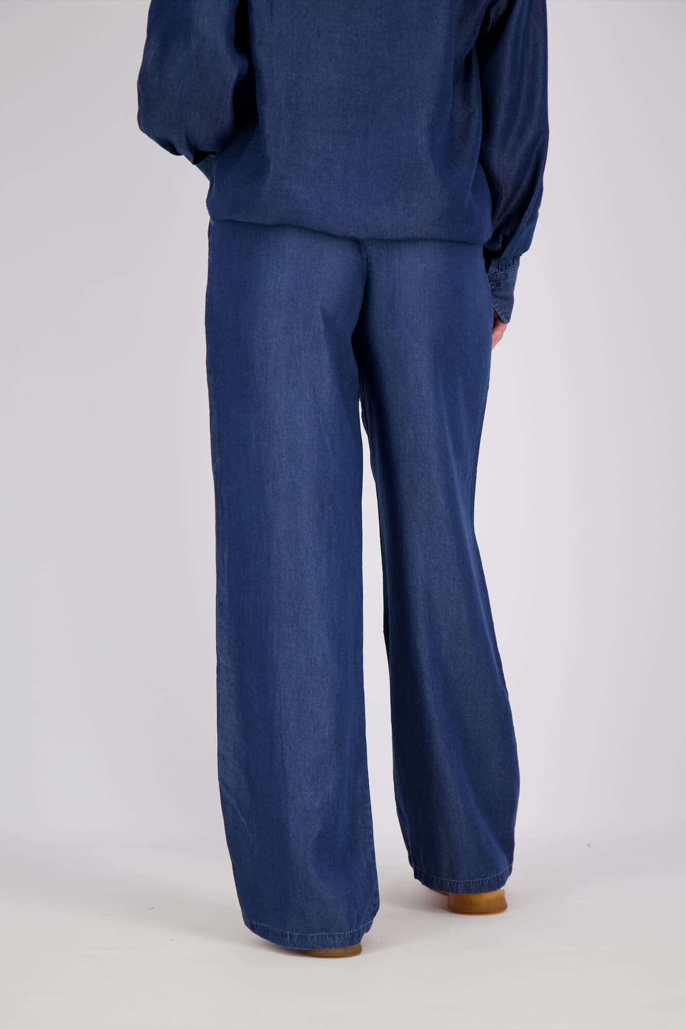 De Pantalon Noella van Selected Femme is een minimalistische dames pantalon met wijde pijpen en een brede pasvorm. Het heeft een normale taille, zakken aan de voor- en achterzijde, en een haak-en-oogsluiting met rits, perfect voor een stijlvolle en comfortabele uitstraling.