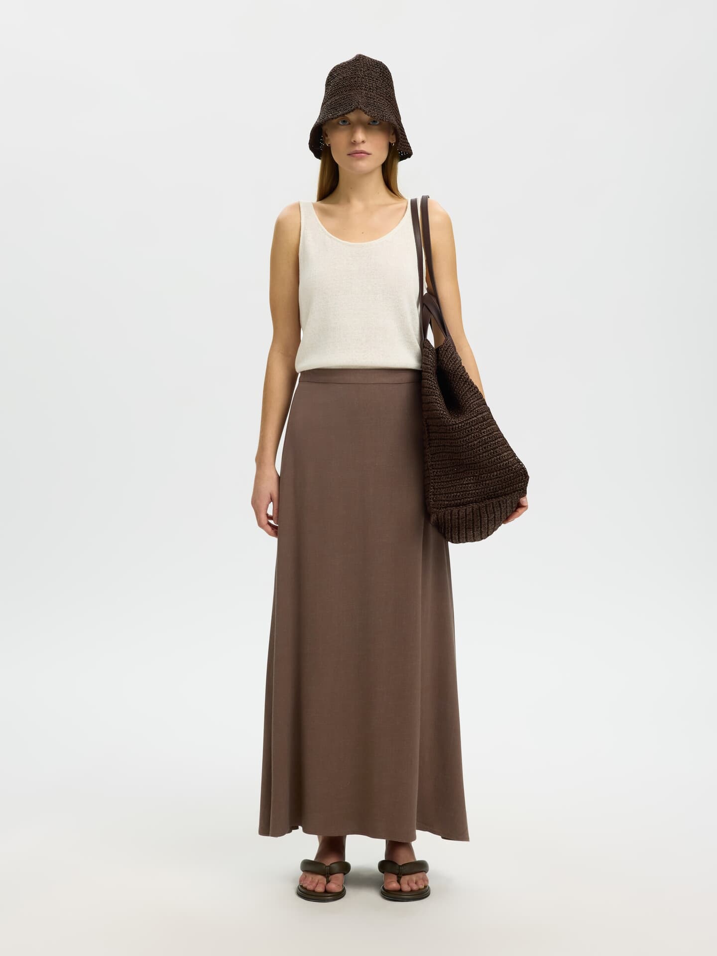 Selected Femme Rok Viva HW Ankle Linnen Blend Bruin