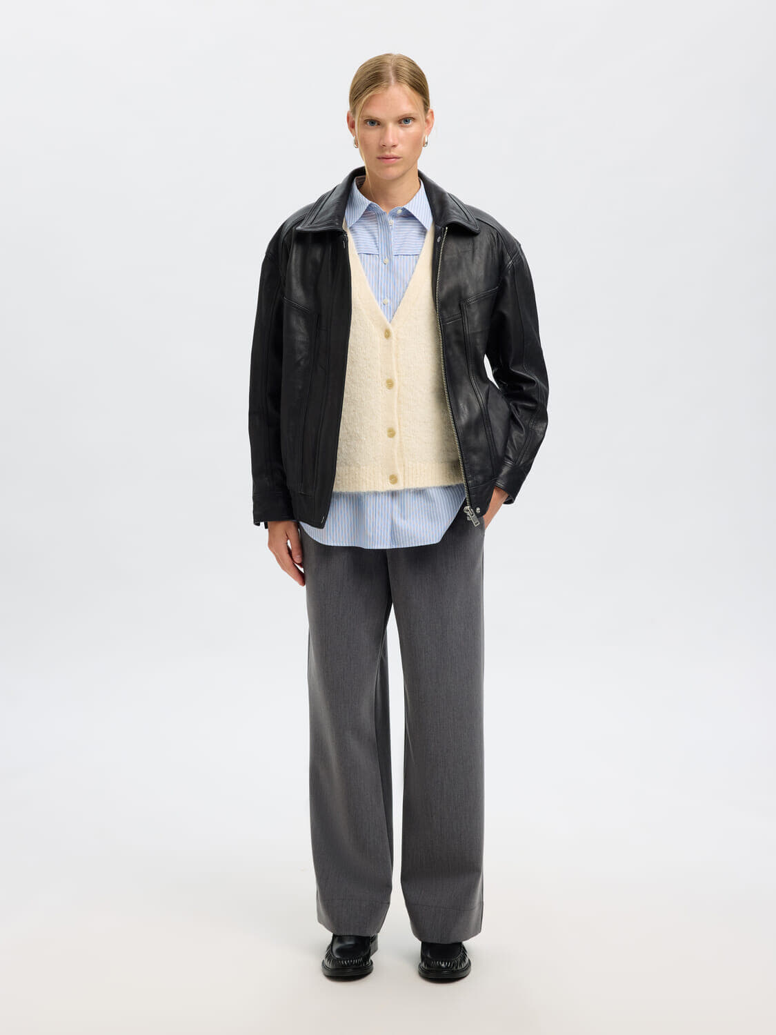 Vest Gabbella van Selected Femme is een stijlvol dames vest met een minimalistisch en casual design. Het heeft een ribgebreid mouwboord, knoopsluiting en V-hals. De losse, oversized pasvorm zonder mouwen maakt het ideaal voor een casual gelegenheid.