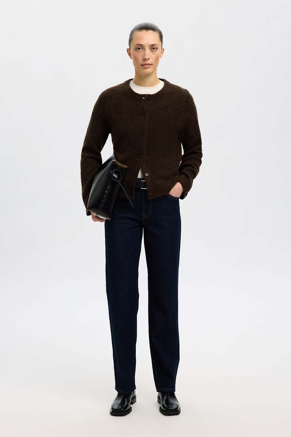 De Vest Lulu Gebreid van Selected Femme is een minimalistisch dames vest zonder kraag, met een ronde halslijn en knoopsluiting. Het heeft een regular pasvorm en lange mouwen, ideaal voor casual gelegenheden. Dit stijlvolle vest combineert comfort en eenvoud.