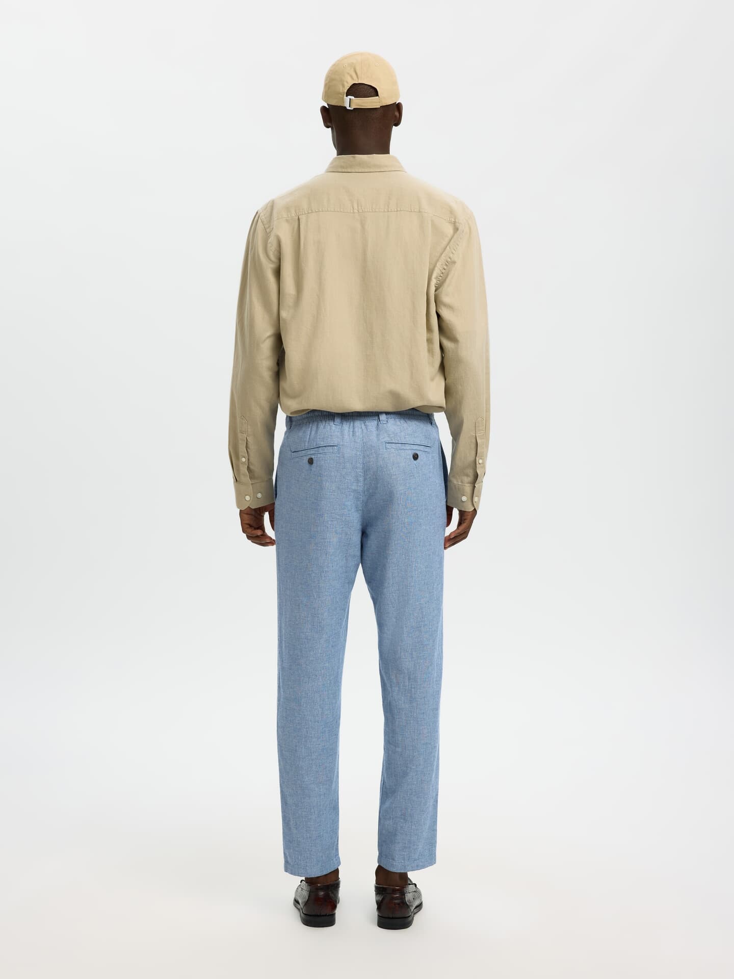 Broek Brody Slim Tape Linnen van Selected Homme is een stijlvolle lange broek met een casual uitstraling. Deze broek heeft een elastische taille, rechte pijpen en een effen patroon. Praktisch met zakken op de achterzijde en sluiting met knopen, ideaal voor dagelijks gebruik.