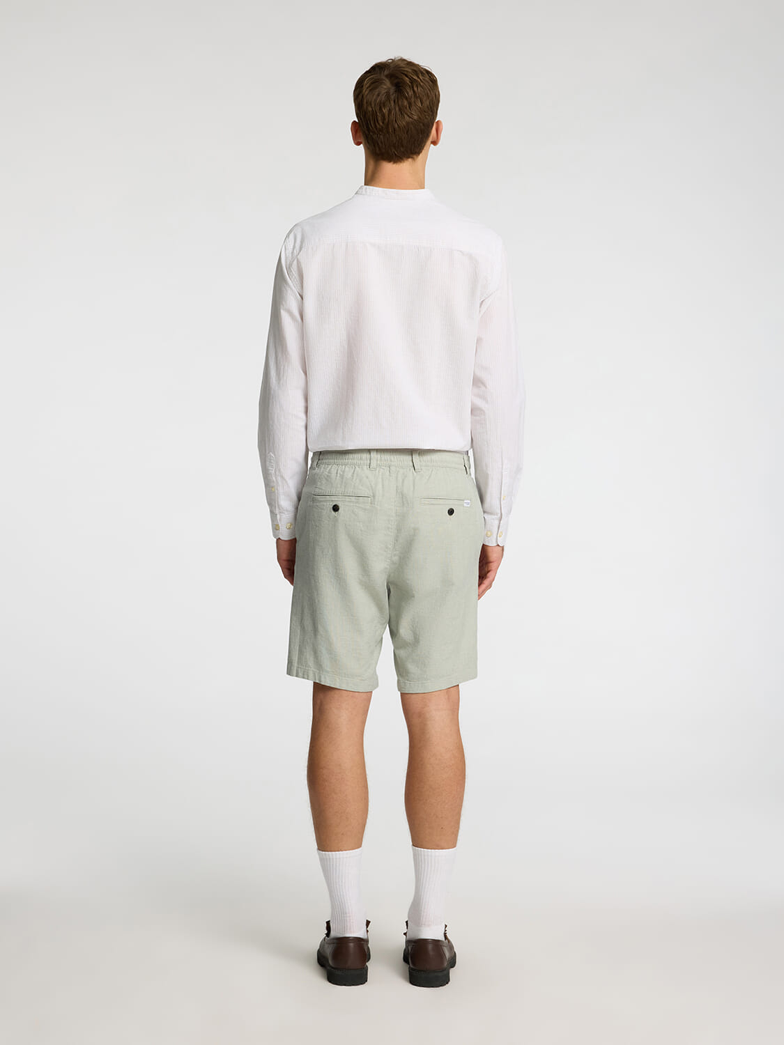 De short van Selected Homme is een casual heren short met een elastische tailleband, voorzien van koord en rits. De regular fit en de variatie in mouwlengtes maken het een veelzijdig kledingstuk, ideaal voor een stijlvolle en comfortabele uitstraling.