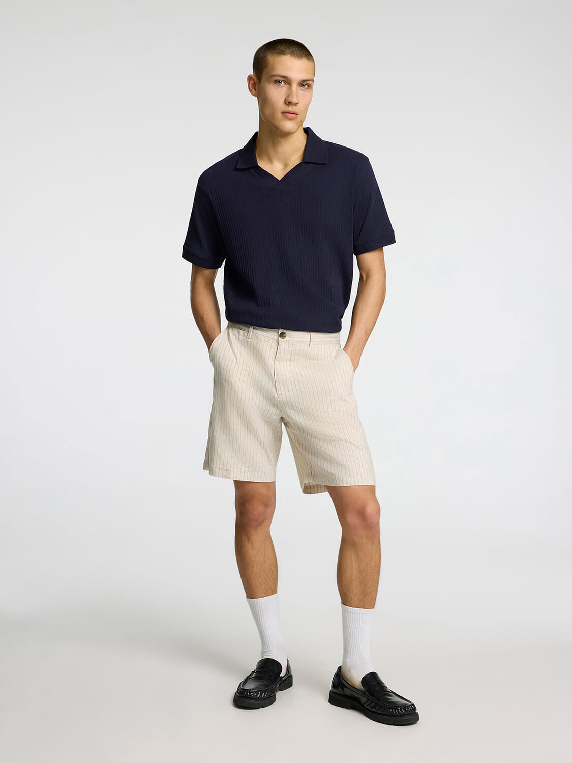 De Short Miles Sun van Selected Homme is een casual heren short met normale taille. Gemaakt van katoen, voorzien van voor- en achterzakken, en een knoopsluiting. Het subtiele streeppatroon maakt het perfect voor de zomer.