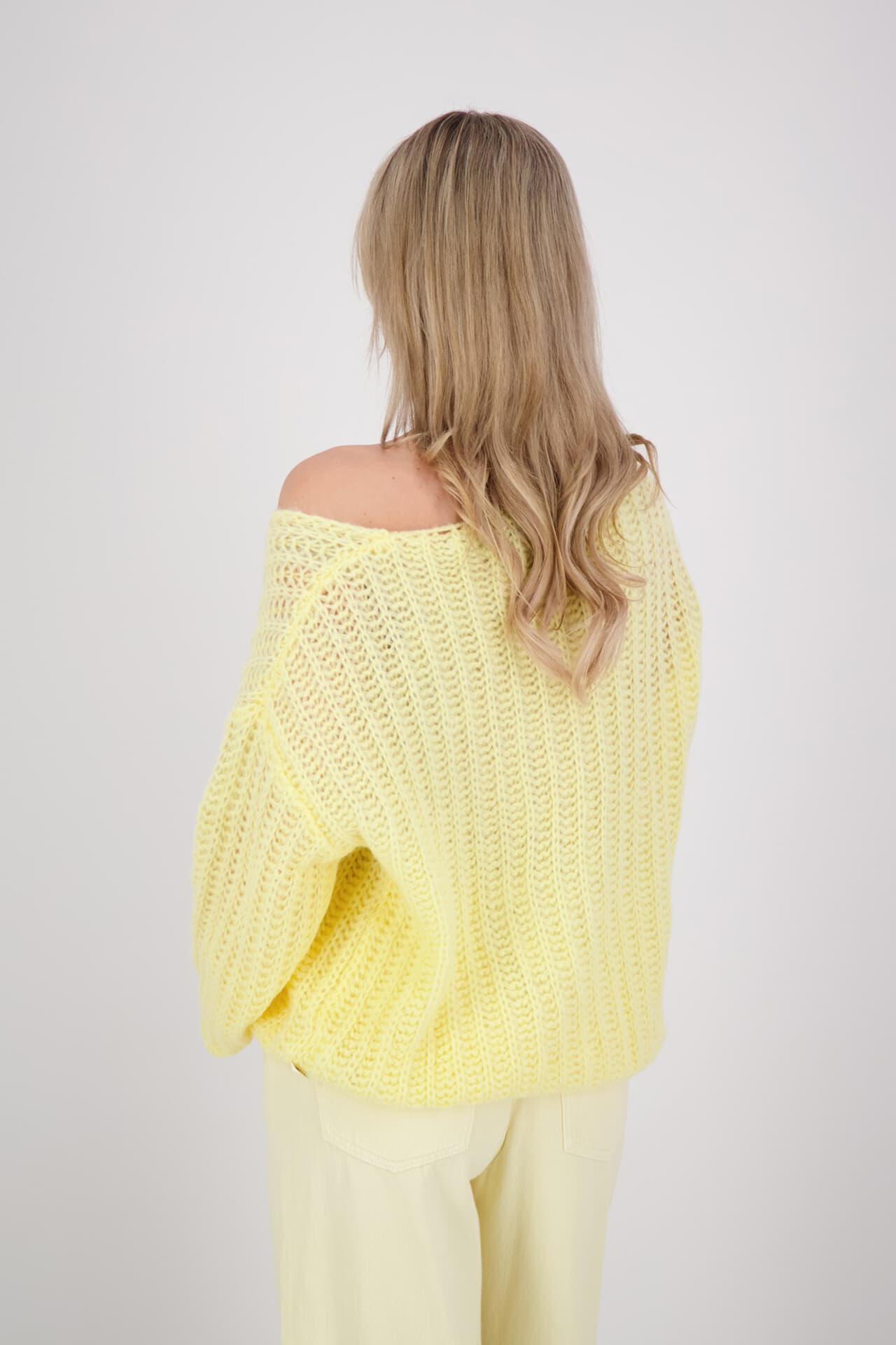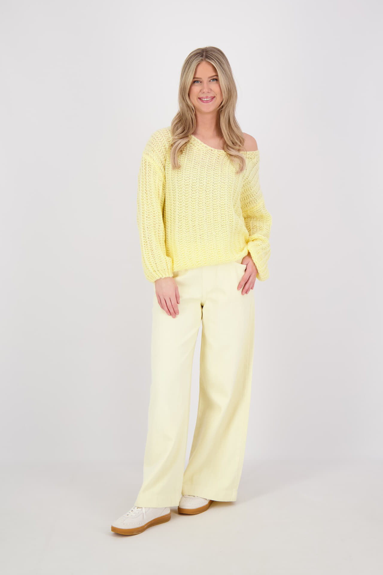 Pullover dames sweaters van Senses The Label in een effen, lichtgele breistructuur met casual uitstraling. De oversized pasvorm, boothals en lange mouwen geven veel bewegingsruimte, terwijl ribgebreide mouwboorden en een geribde zoom zorgen voor een nette, comfortabele afwerking voor ontspannen momenten.