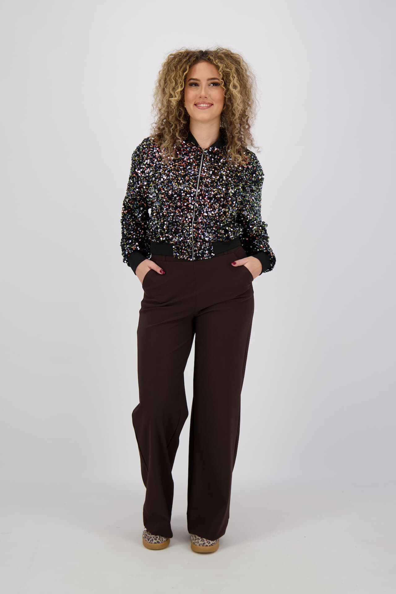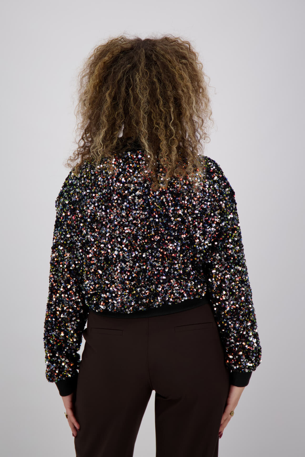 De Blouse Garwin van Sisters Point combineert een trendy stijl met een cropped fit en lange mouwen. Deze bomberjas heeft een ritssluiting en een effen patroon, perfect voor een stijlvolle uitstraling. De glanzende pailletten voegen een vleugje glamour toe aan elke outfit.