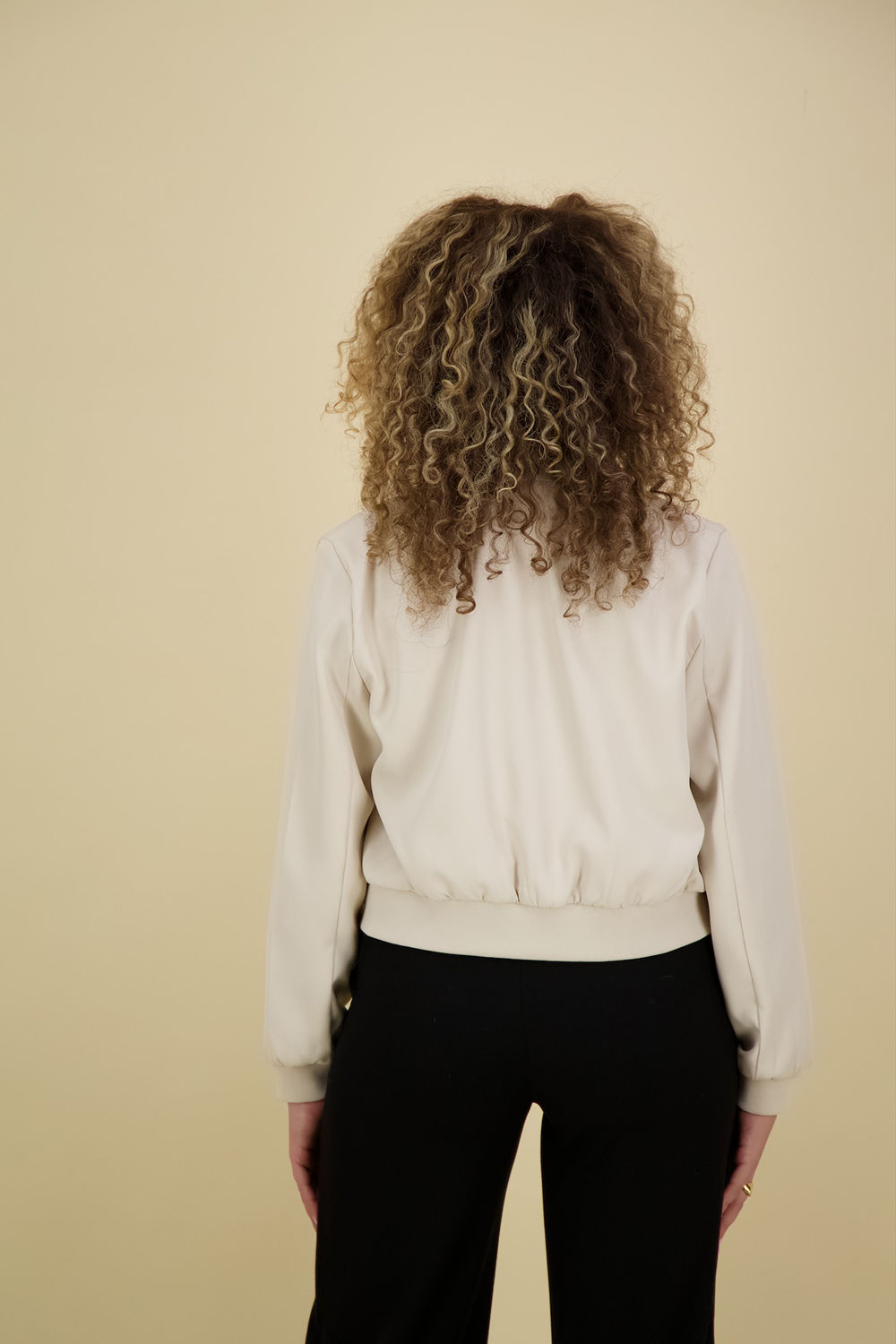 De Bomberjack Garwin-JA van Sisters Point is een stijlvolle toevoeging aan elke casual outfit. Met een opstaande kraag, voorzakken en knoopsluiting straalt deze cropped fit bomberjack eenvoud en elegantie uit. Lange mouwen en ribgebreide mouwboorden maken de effen damesjack compleet.