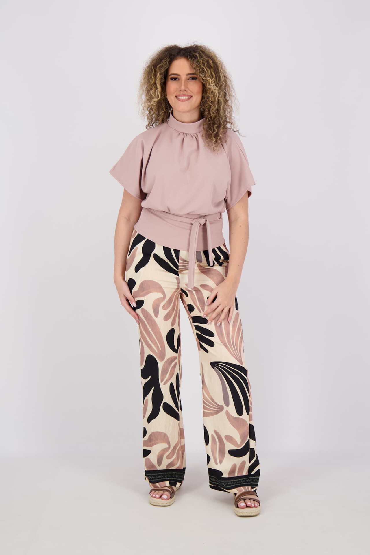 Top Girl korte mouw van Sisters Point heeft een effen mockneck en een getailleerde pasvorm. De korte, wijde mouwen geven ruimte, terwijl de tailleband met strik zorgt voor vorm. Achter zit een subtiele split met knoopsluiting. Combineer met een pantalon of rok voor netjes.