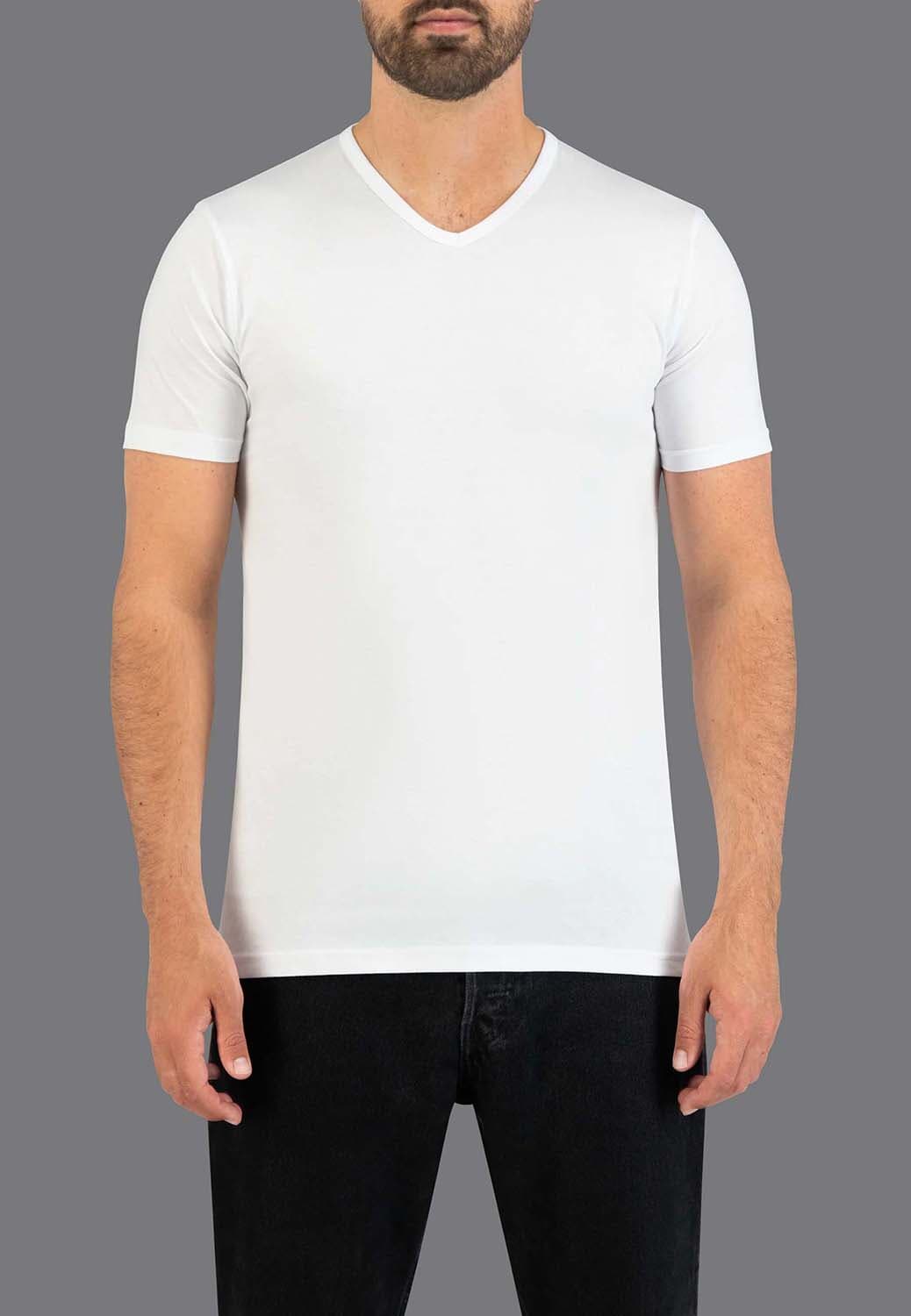 Deze set van twee witte T-shirts heeft een V-hals en korte mouwen. Gemaakt van 100% katoen, bieden ze een comfortabele en ademende pasvorm. Perfect als basislaag of om casual te dragen.