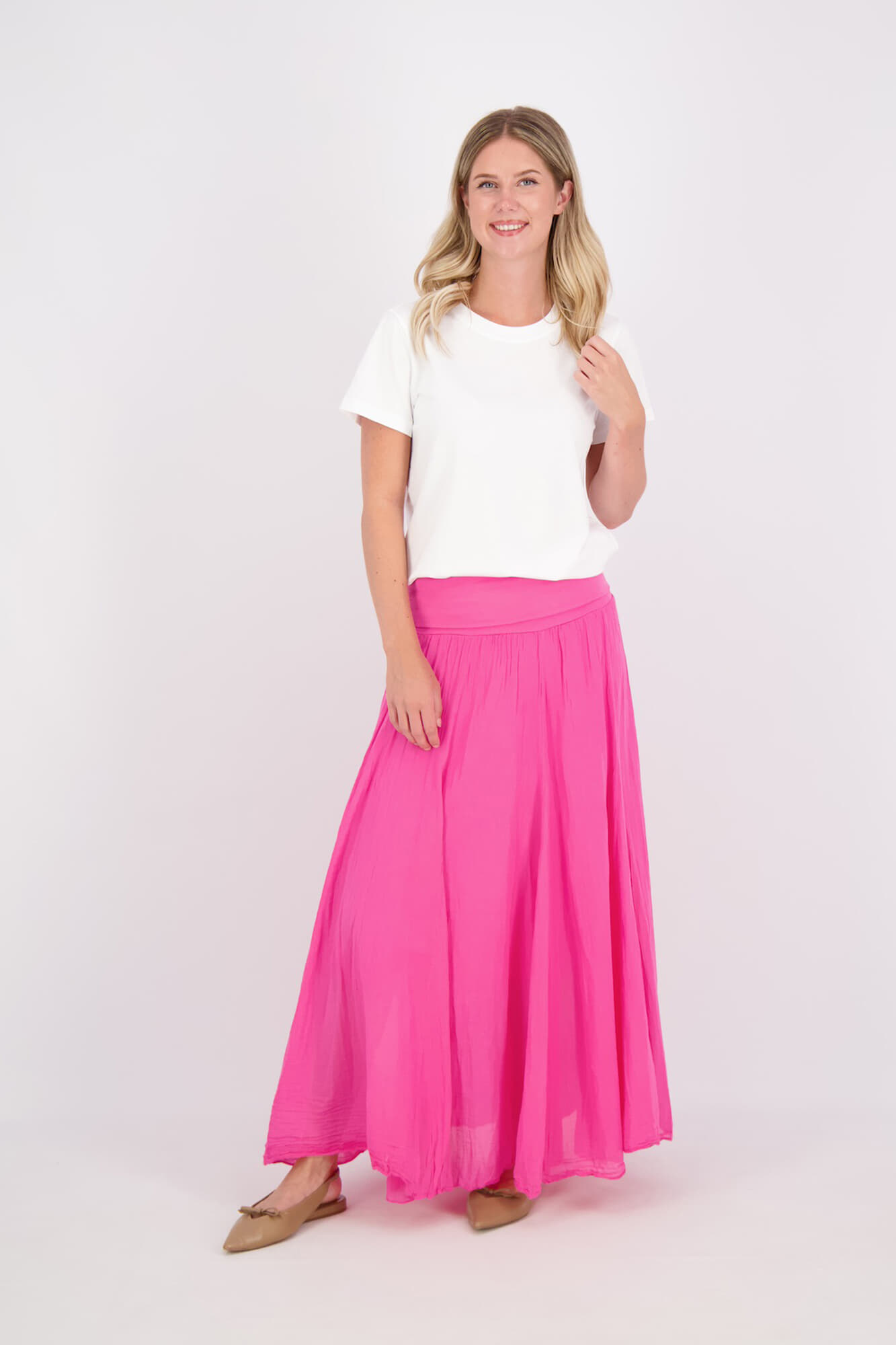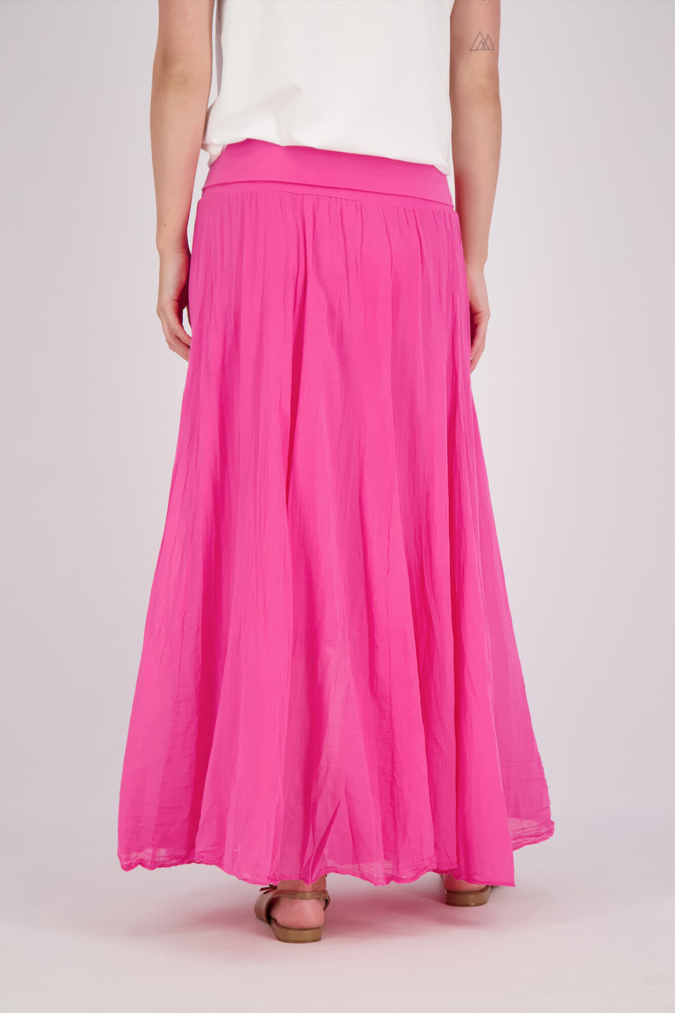 De rok van Sorbet is een elegante dames rok lang, ontworpen met een hoge taille en maxi lengte. Deze rok biedt een vrouwelijke uitstraling door zijn vloeiende vorm en comfortabele pasvorm. Perfect voor elke gelegenheid, en combineert stijl met eenvoud.