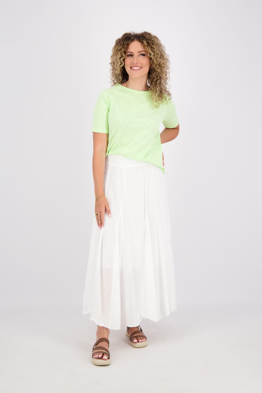 De rok van Sorbet is een elegante dames rok lang, ontworpen met een hoge taille en maxi lengte. Deze rok biedt een vrouwelijke uitstraling door zijn vloeiende vorm en comfortabele pasvorm. Perfect voor elke gelegenheid, en combineert stijl met eenvoud.