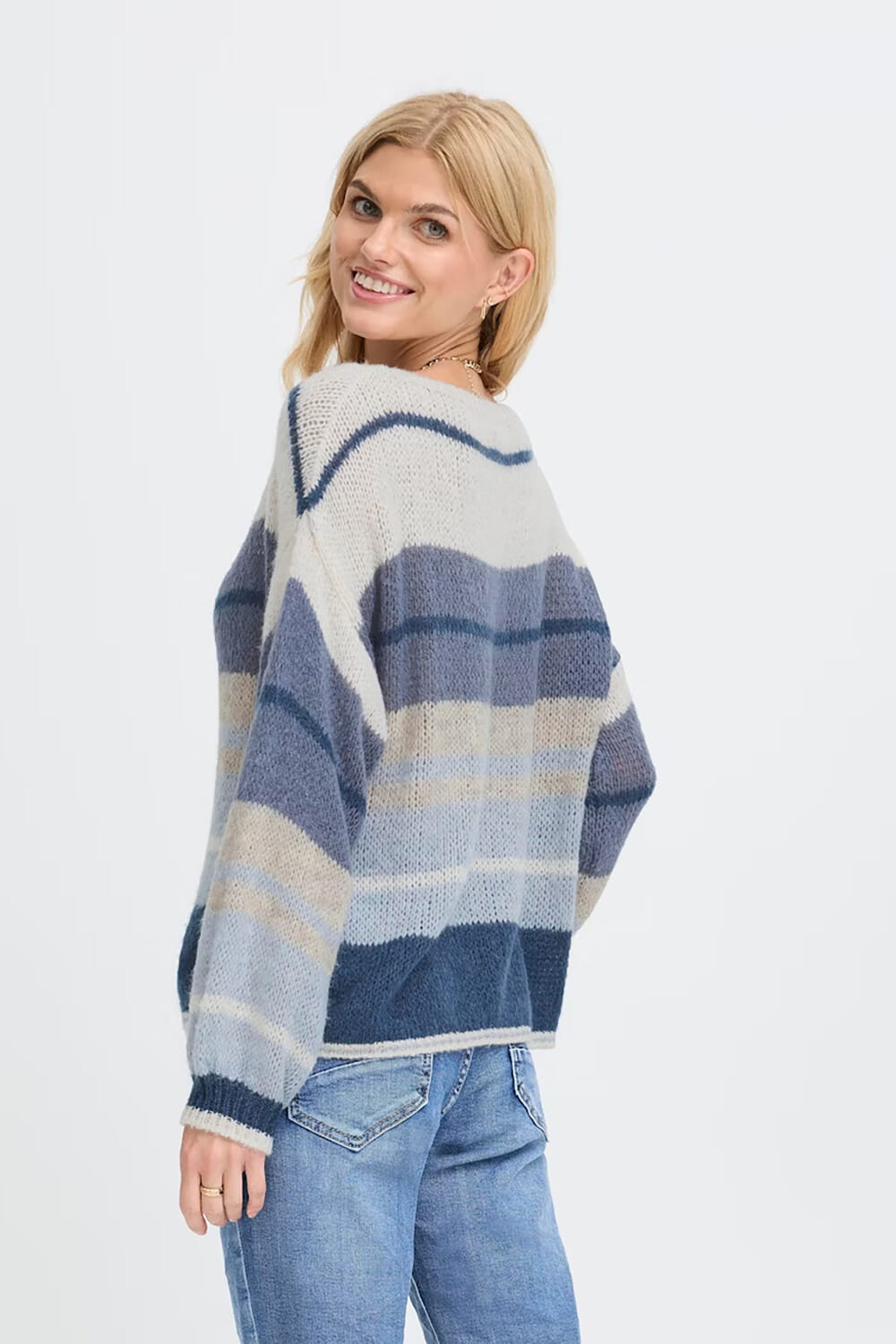 De Trui Cumbana van Sorbet is een stijlvolle toevoeging aan de dames truien collectie. Deze casual trui heeft een ronde halslijn en lange mouwen, met een speels streeppatroon. De losse pasvorm zorgt voor comfort en maakt het een veelzijdig kledingstuk voor elke gelegenheid.