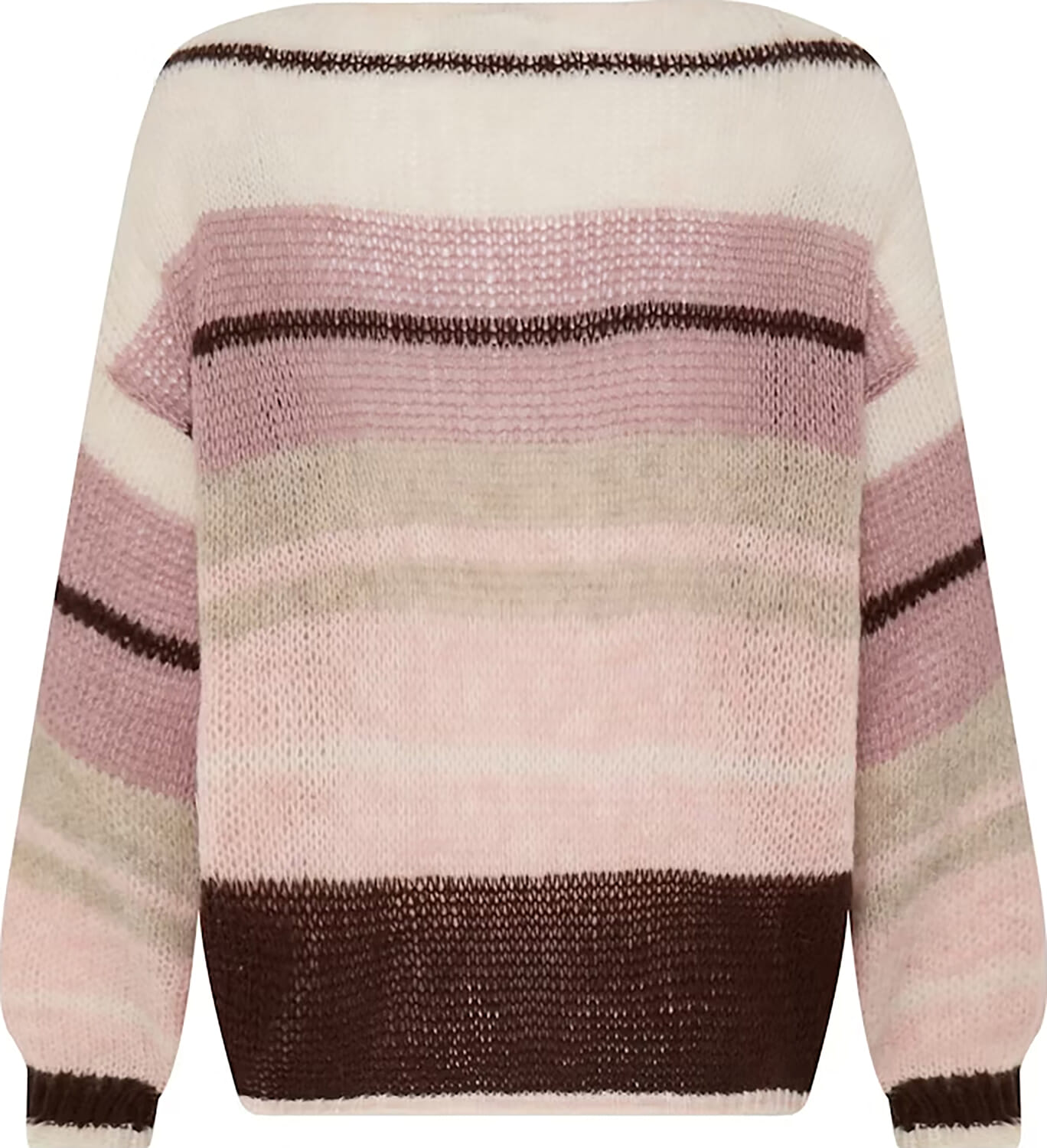 De Trui Cumbana van Sorbet is een stijlvolle toevoeging aan de dames truien collectie. Deze casual trui heeft een ronde halslijn en lange mouwen, met een speels streeppatroon. De losse pasvorm zorgt voor comfort en maakt het een veelzijdig kledingstuk voor elke gelegenheid.