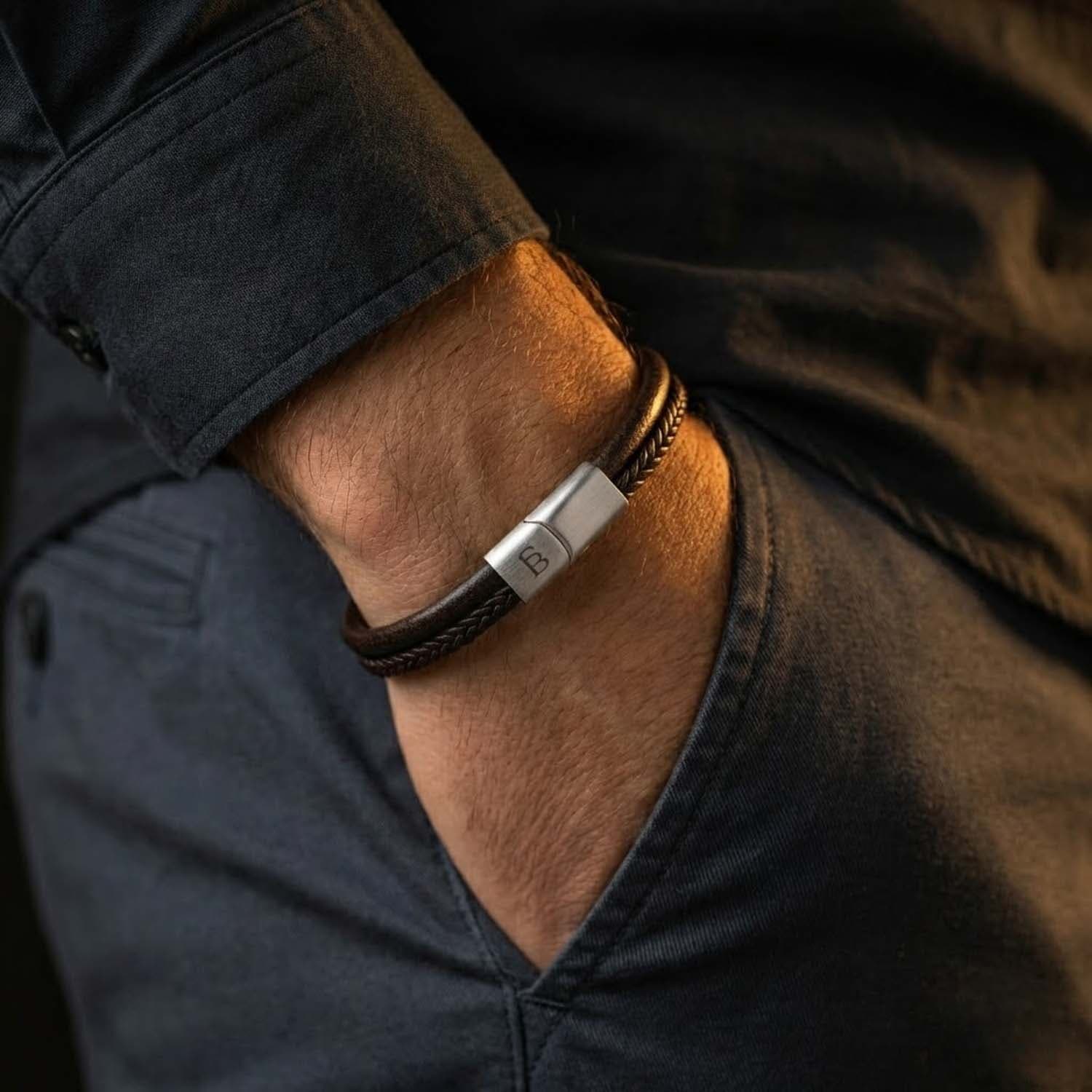 De Leather Bracelet Denby van Steel & Barnett, een heren sieraad, combineert stijl en vakmanschap. Met zijn gevlochten leren band en stevige sluiting voegt het een subtiele, maar elegante touch toe aan elke outfit. Ideaal voor dagelijks gebruik of speciale gelegenheden.