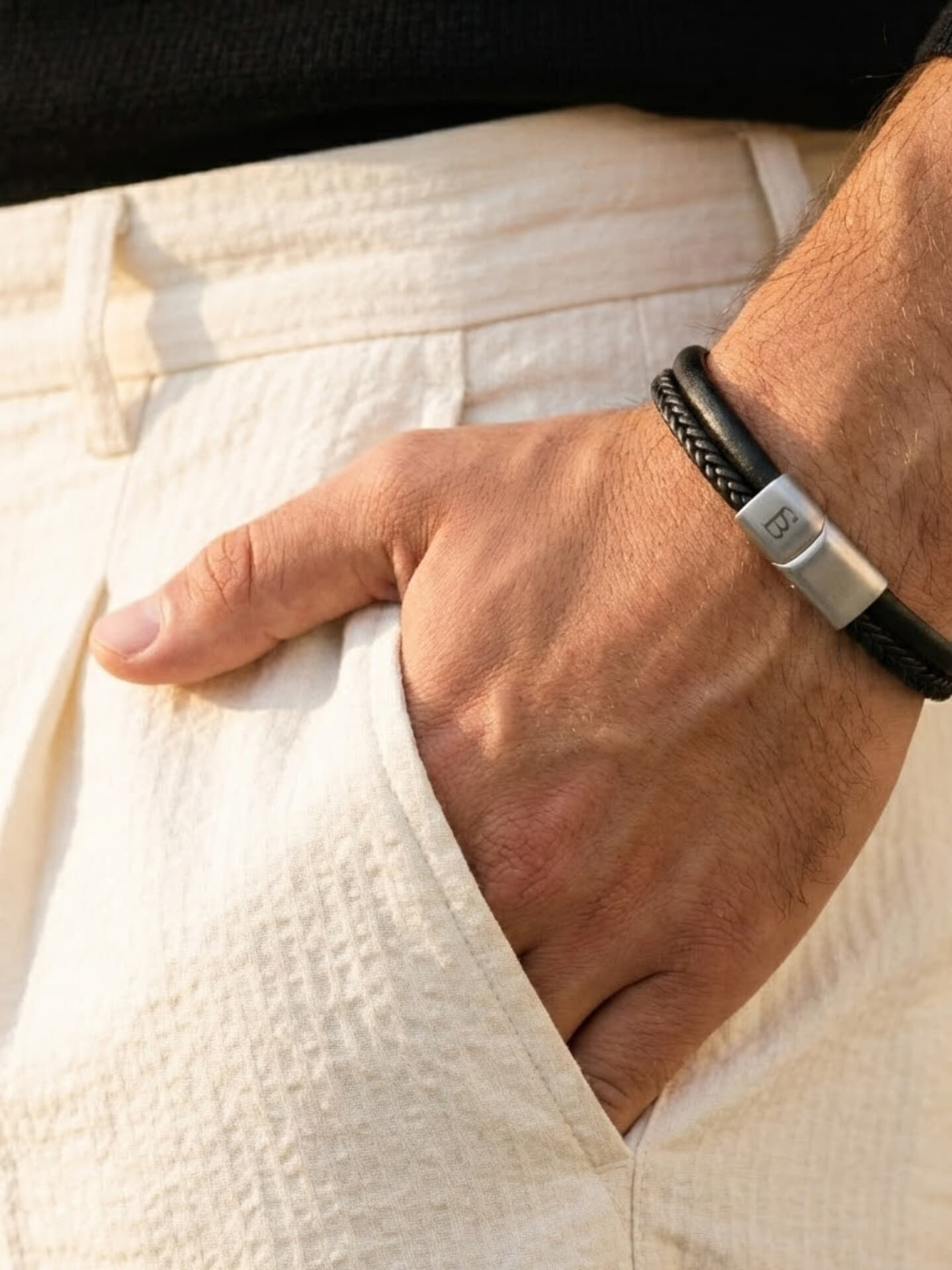 De Leather Bracelet Denby van Steel & Barnett, een heren sieraad, combineert stijl en vakmanschap. Met zijn gevlochten leren band en stevige sluiting voegt het een subtiele, maar elegante touch toe aan elke outfit. Ideaal voor dagelijks gebruik of speciale gelegenheden.