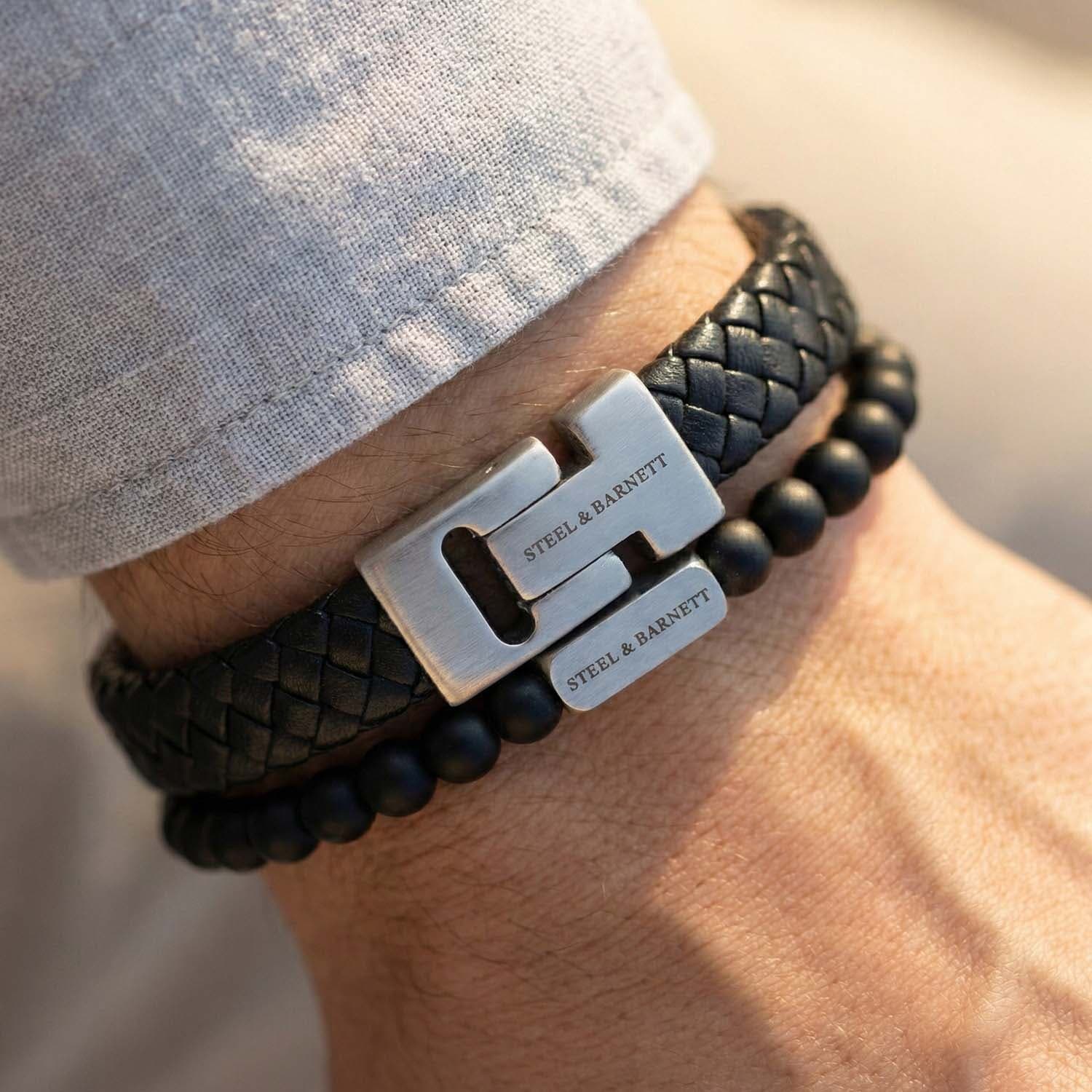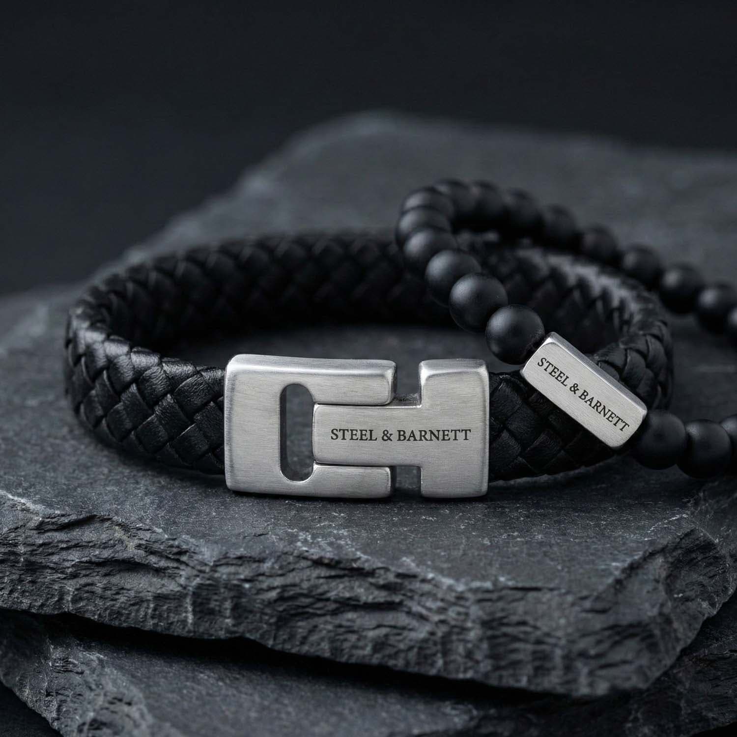 Armbanden Giftset van Steel & Barnett combineert twee effen polsbanden met gevlochten structuur, kralen en een stevige sluiting met logo. De set draagt prettig, sluit goed aan en past bij casual, netjes en trendy outfits. Draag samen voor balans of los voor een minimalistische stijl.