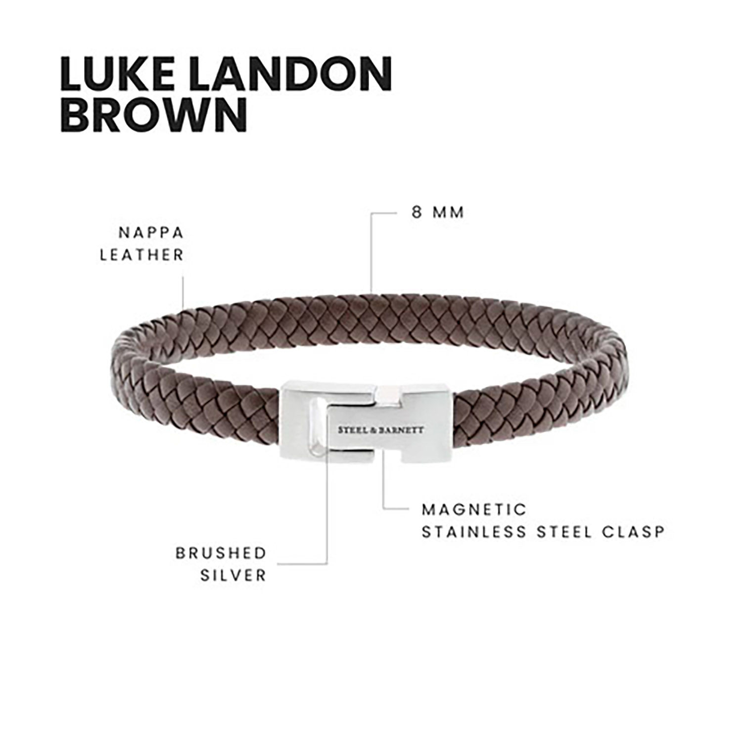 De Leather Bracelet Archie van Steel & Barnett is een stijlvol heren sieraad. Gemaakt van hoogwaardig leer, biedt deze armband een verfijnde uitstraling en duurzaamheid. De gevlochten structuur en het metalen sluitstuk maken het een perfecte aanvulling op elke outfit.