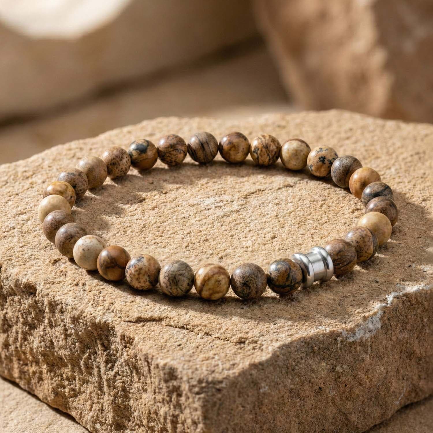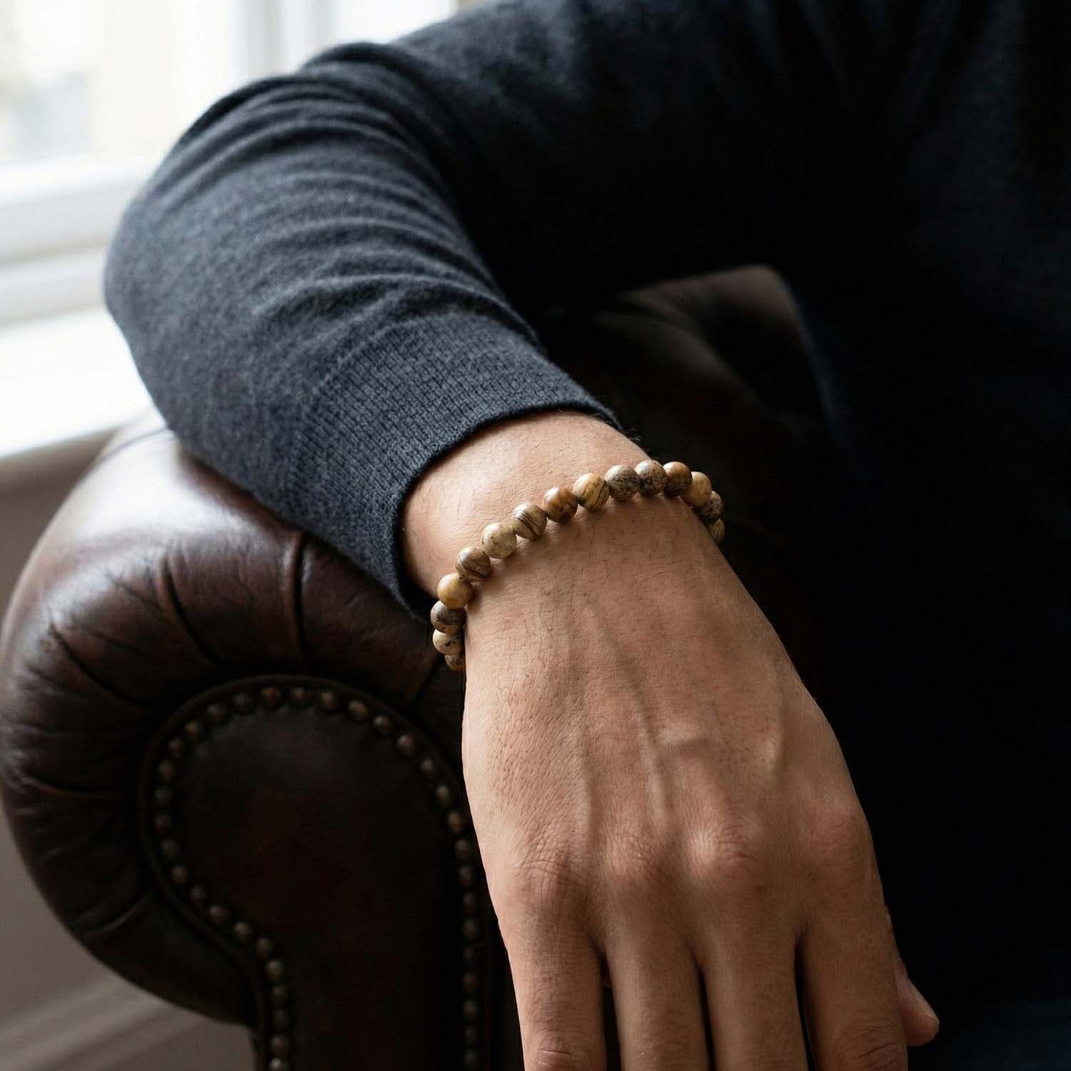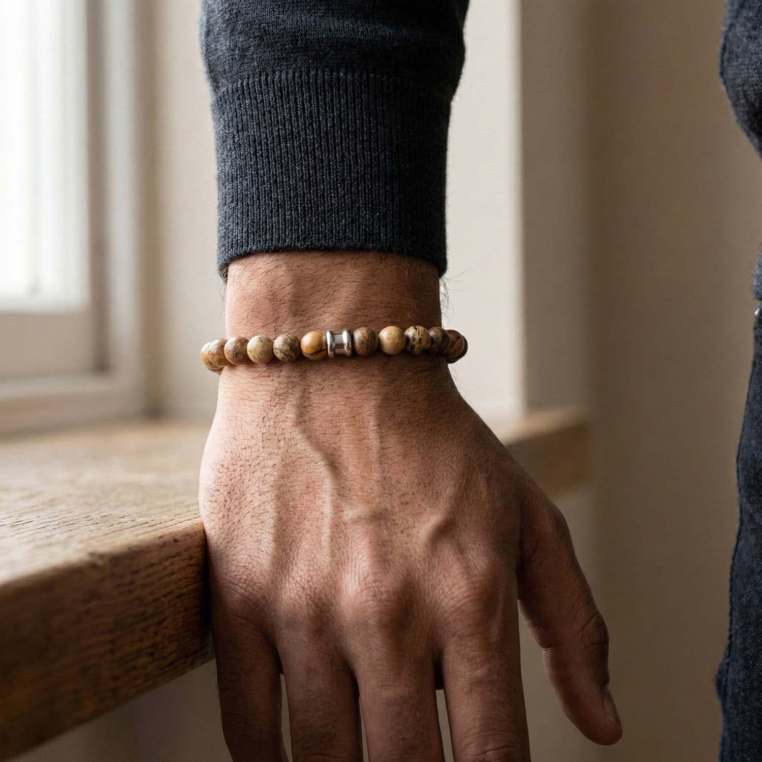 De Stones Bracelet Basic Beige van Steel & Barnett is een stijlvolle armband voor heren, gemaakt van 100% natuursteen. Het ontwerp is minimalistisch, tijdloos en gemakkelijk te combineren met zowel casual als smart-casual outfits. De matte beige tint geeft de armband een rustige, natuurlijke uitstraling, terwijl de hoogwaardige natuurstenen kralen zorgen voor een luxe, robuuste look.