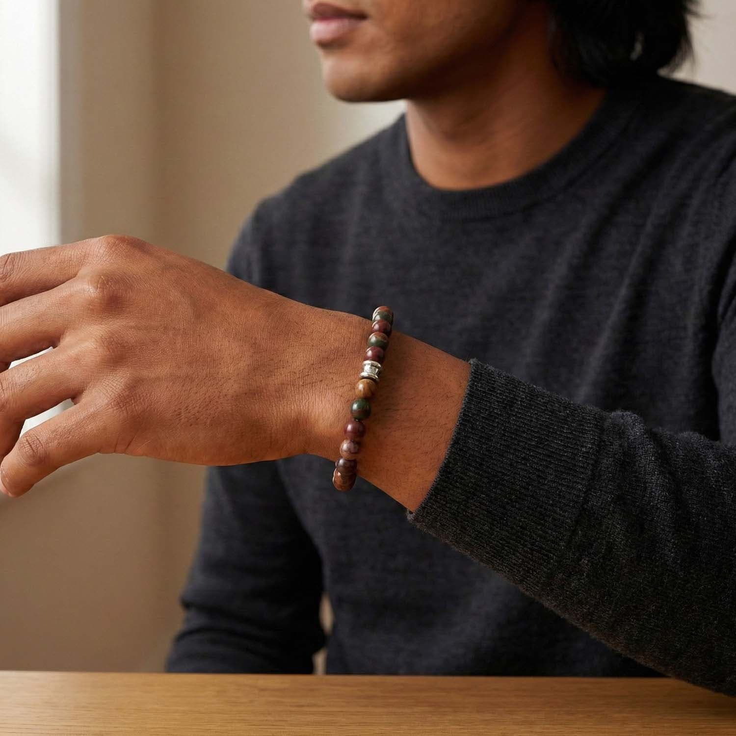 De Stones Bracelet Basic Beige van Steel & Barnett is een stijlvolle armband voor heren, gemaakt van 100% natuursteen. Het ontwerp is minimalistisch, tijdloos en gemakkelijk te combineren met zowel casual als smart-casual outfits. De matte beige tint geeft de armband een rustige, natuurlijke uitstraling, terwijl de hoogwaardige natuurstenen kralen zorgen voor een luxe, robuuste look.