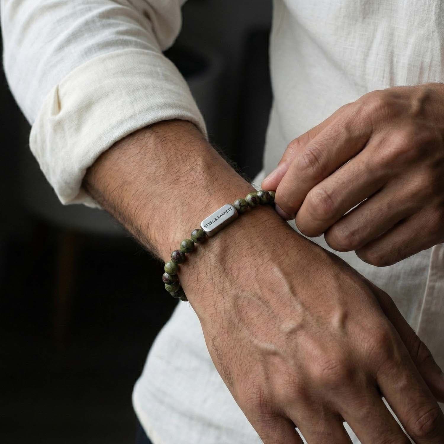 De Stones Bracelet Natural Ned van Steel & Barnett is een stijlvol heren sieraad. Deze armband combineert minimalistisch design met een casual uitstraling door de natuurlijke stenen en subtiele kleuren. Perfect om elke outfit een stijlvolle touch te geven.