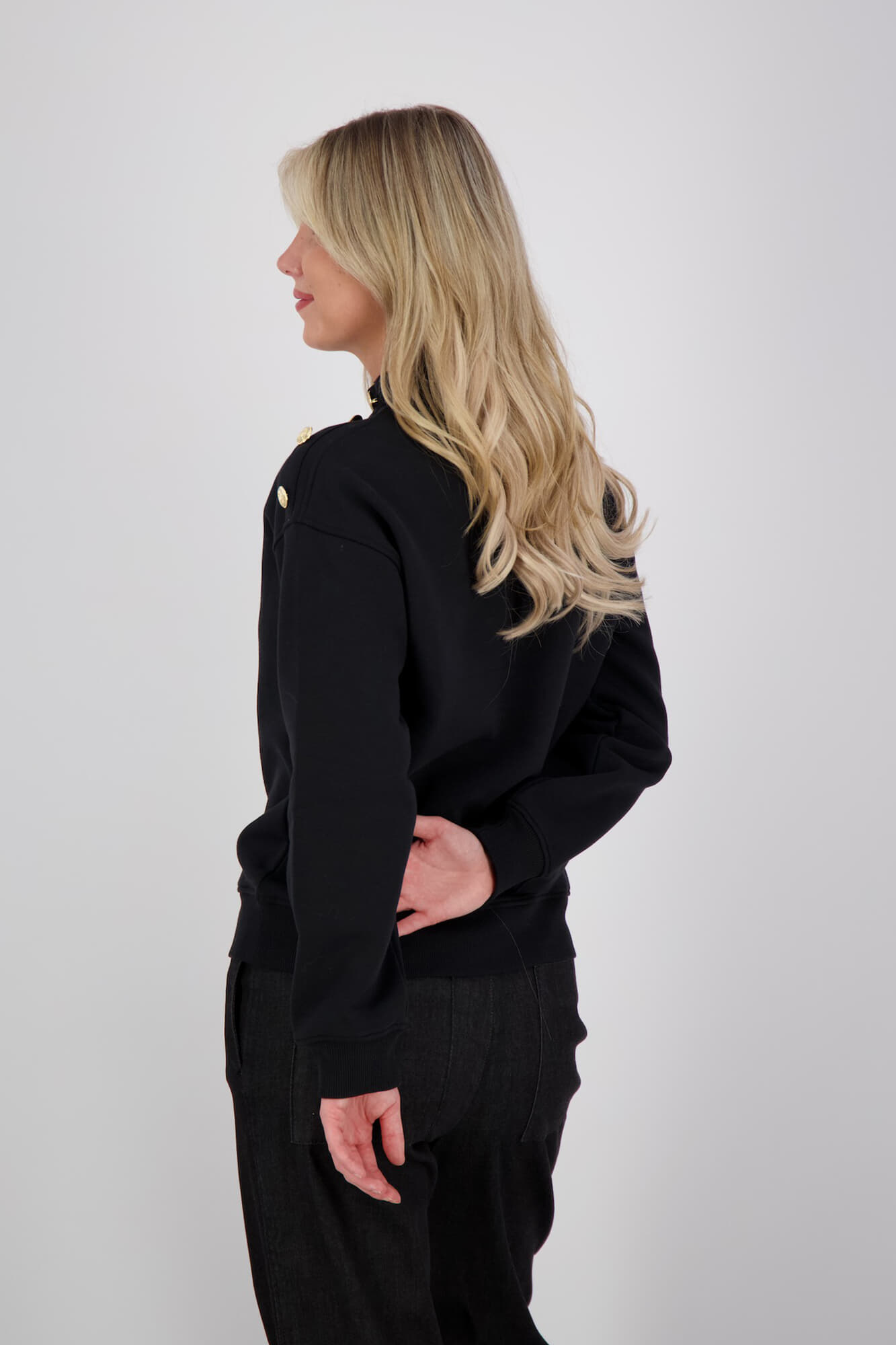 Geisha Sweater met Buttons op de Schouder Zwart